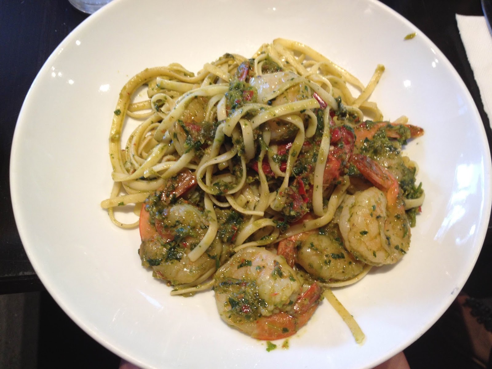 CK had the chilli prawn linguine, which had just the right amount of oomph (chilli) for her. Although not specified on the menu, the pasta came with a coriander and ginger pesto-like sauce that gave the dish a surprisingly Asian flavour that was quite different but moreish. Tossed into it were plump prawns and blistered cherry tomatoes, which were a yummy touch.