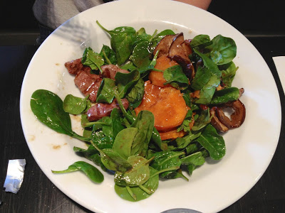 LK had settled on a meaty salad, which was served warm with chargrilled lamb, roasted sweet potatoes, eggplant and baby spinach. It was the kind of salad that was light but hearty at the same time, given by the addition of lamb and eggplant, which was scrumptious. The balsamic dressing wasn’t too heavy or overpowering and complemented the sweet potato – roasted so that it was sweet and soft – really nicely.