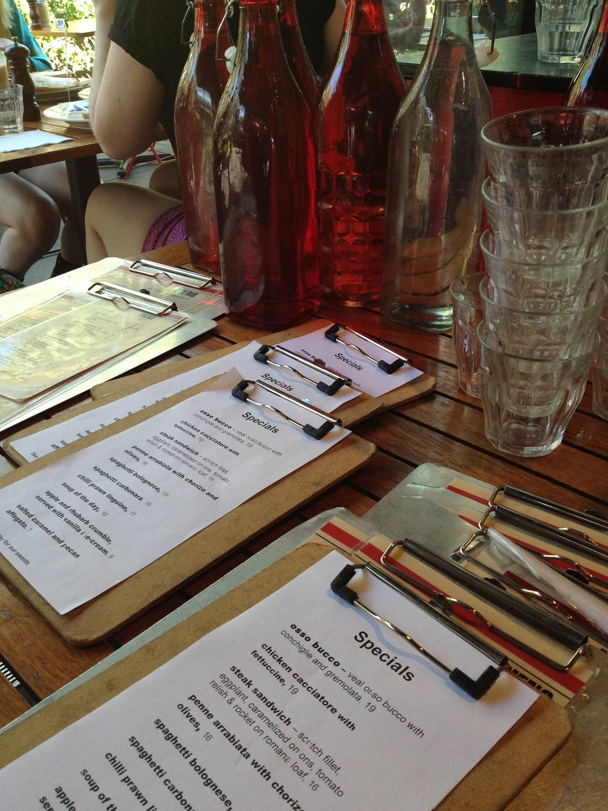 Panini, bruschetta, sandwiches and wraps feature heavily on the all day lunch menu (there is an all day breakfast menu, too) with the addition of salads, and today what I felt like was a good, hearty sandwich. The specials menu had quite a variety of offerings, with some hearty dishes such as Osso Buco and Chicken Cacciatore, as well as various pastas.