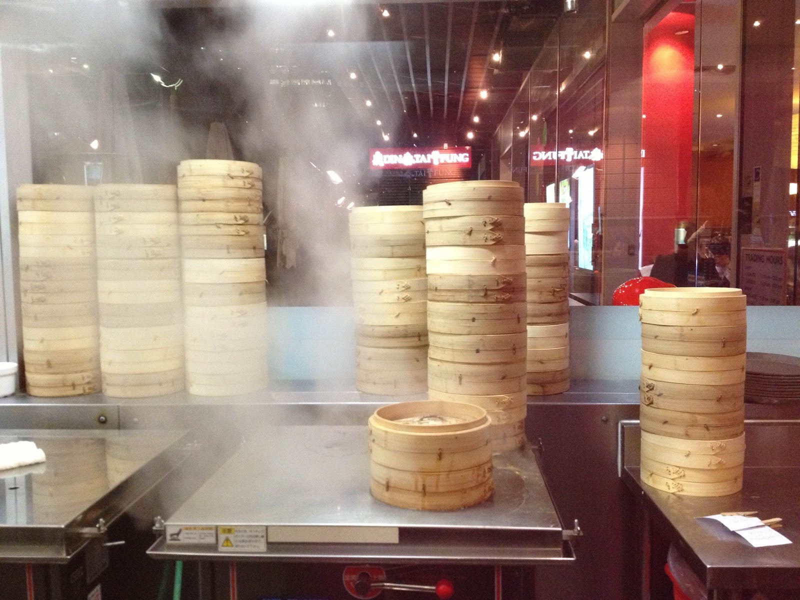 We walked straight inside to find it still quite busy, the waiters bustling around carrying stacks of hot steamers to tables that sat either waiting patiently for their orders or enjoying their hot noodles and dumplings. Patient workers from the kitchen, laden in their whites and with caps and a face mask on, wait in the corner for a waiter to take the steamer of food from them so that they can return to the kitchen. It is this brisk, orderly process of handling the orders, which are written down on a form attached to a clipboard to be collected by a waiter, that sets DTF apart from many other Chinese restaurants.
