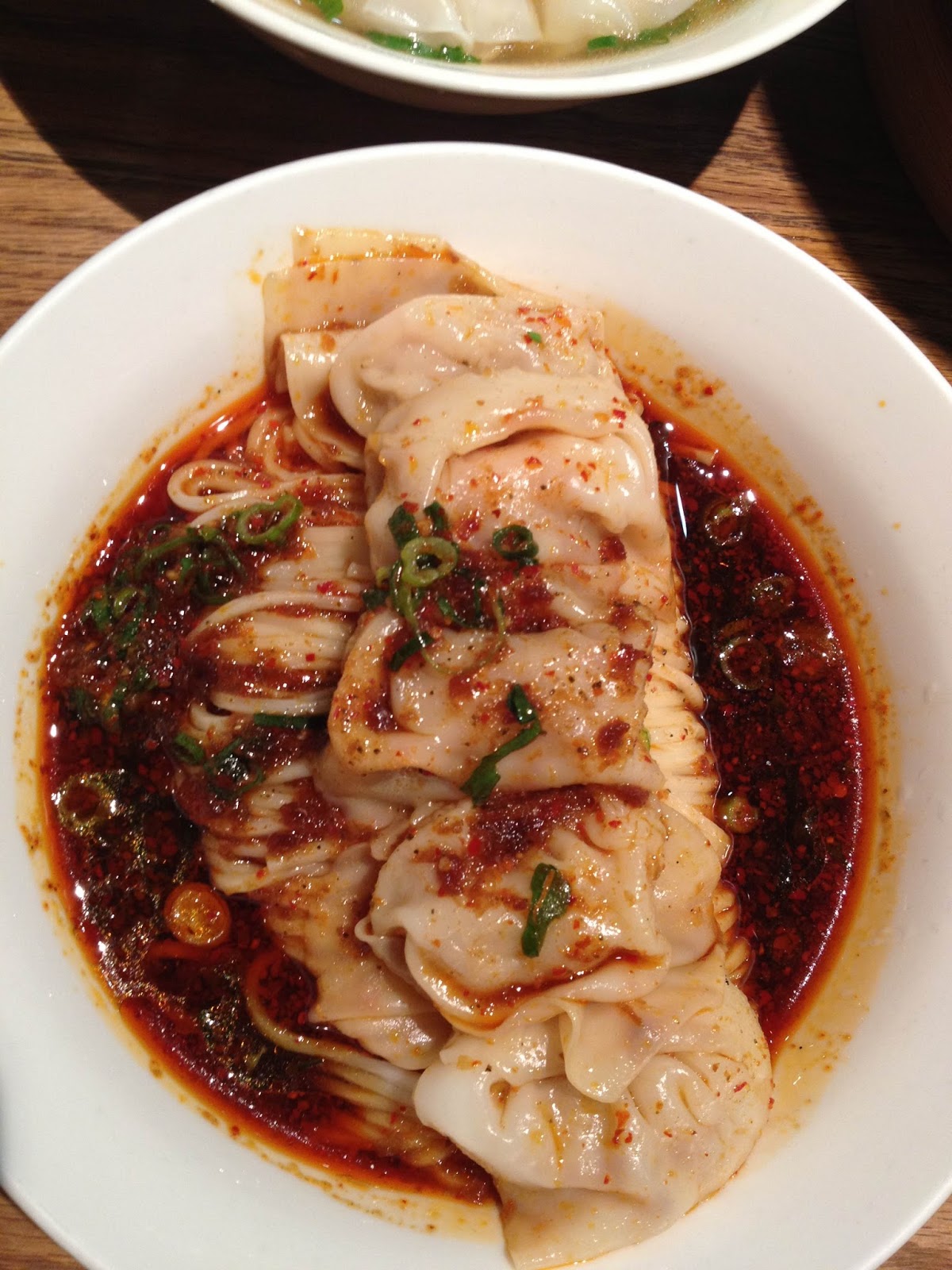 We ordered Xiao Long Bao, which arrived within 15 mins in steaming baskets that were opened on the table to reveal beautiful, perfect little pork-filled gems. When picked up some would unwillingly attach themselves to our chopsticks (from the steaming process they’d become naturally sticky on the outside), but nevertheless they were full of flavour and porky goodness. Some say the best way to eat xiao long bao is by nibbling at the pastry, letting the soup come out and drinking it before eating the dumpling. I like to pop the whole dumpling in my mouth (provided it’s had some time to cool down) to enjoy the instantaneous explosion of soup and meat that spills out from the wrapping that encloses it. Whichever way you choose, dipping the dumpling into the soy-vinegar concoction that you can mix yourself at the table is a must, with the slivers of fresh ginger in the condiment dish providing just the right hit of hotness.