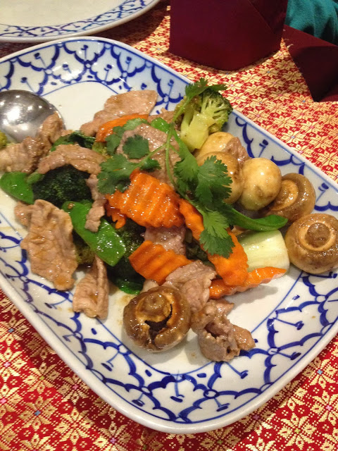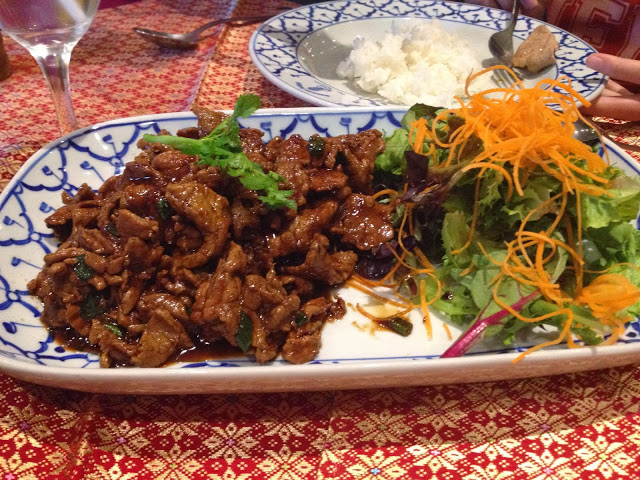 We’d come for a taste of Thai food to celebrate Dad’s birthday. The menu is quite extensive, with the regular classics (Pad Thai, Green Curry, Satay) as well as a range of more real, traditional Thai dishes – the stir-fry, meat and seafood sections of the menu are quite lengthy. The restaurant isn’t very big and by the time we arrived during peak dinner-hour it was at full capacity, even on a Thursday night.