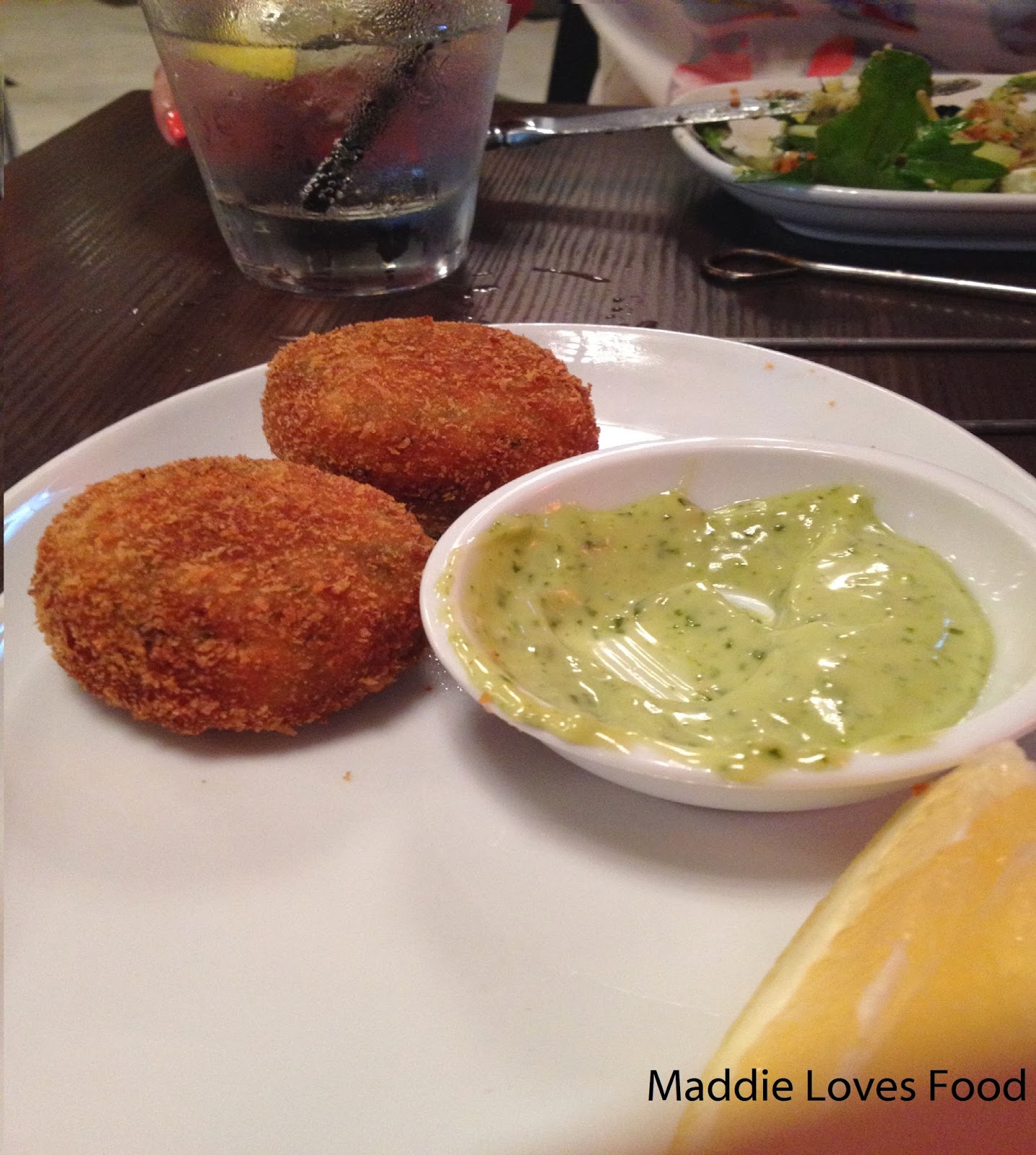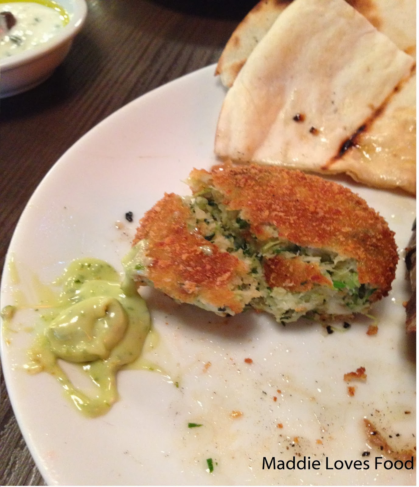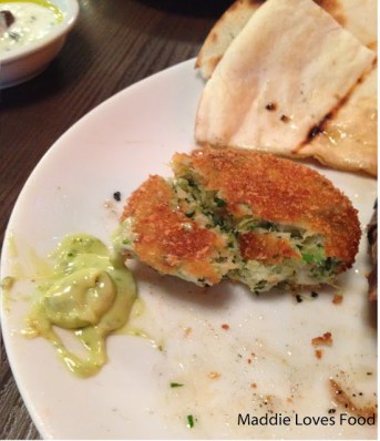 Being a table of four, we start with a plate of Zucchini and Haloumi Fritters which come lightly fried alongside a delicious garlic and basil aioli. They look much like flattened out arancini; the crisp, golden outside encasing a creamy, green-flecked filling. It reminds me of a cheese and spinach filling, and the haloumi goes perfectly with the soft zucchini without being too overpowering or salty.