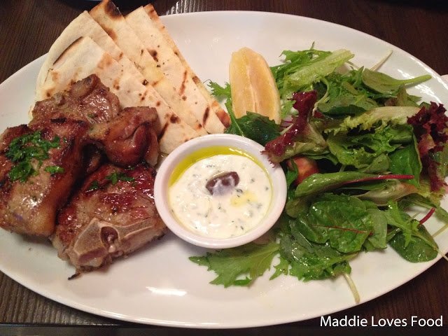 I ordered the chargrilled lamb loin on the bone, which came as 3 lamb loin chops along with a salad, warm pita bread and tzaziki as well as a wedge of lemon. The lamb, despite being a cut I normally don’t eat, was surprisingly tender and cooked a little pink in the centre. The parsley sprinkled on too and tzaziki went really well with it, and the pita bread was smothered in garlic and toasted to a beautiful chewiness.