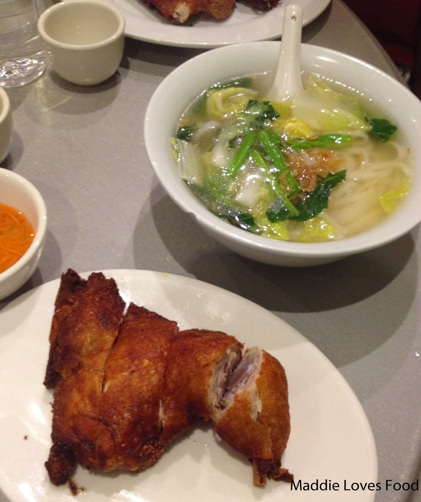 Mum got the crispy skin chicken rice noodle soup, with the chicken coming on the side, and GG the same but with rice instead. The chicken was succulent inside and the noodle soup clear and subtle. The rice comes with slices of pickled radish and carrot – a good cleanser after the salty fried chicken.