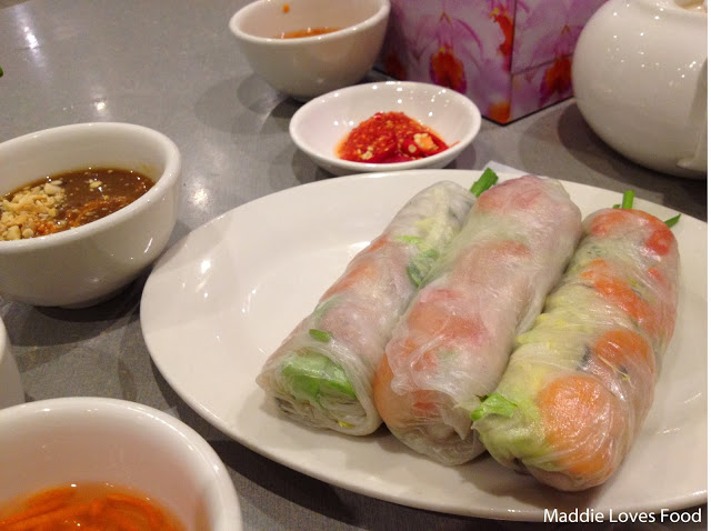 In the mood for a little nibbling, we order the pork and prawn fresh rolls to start. These came with a peanut dipping sauce, filled with juicy prawns and slices of pork as well as shreds of lettuce, vermicelli, mint and coriander.