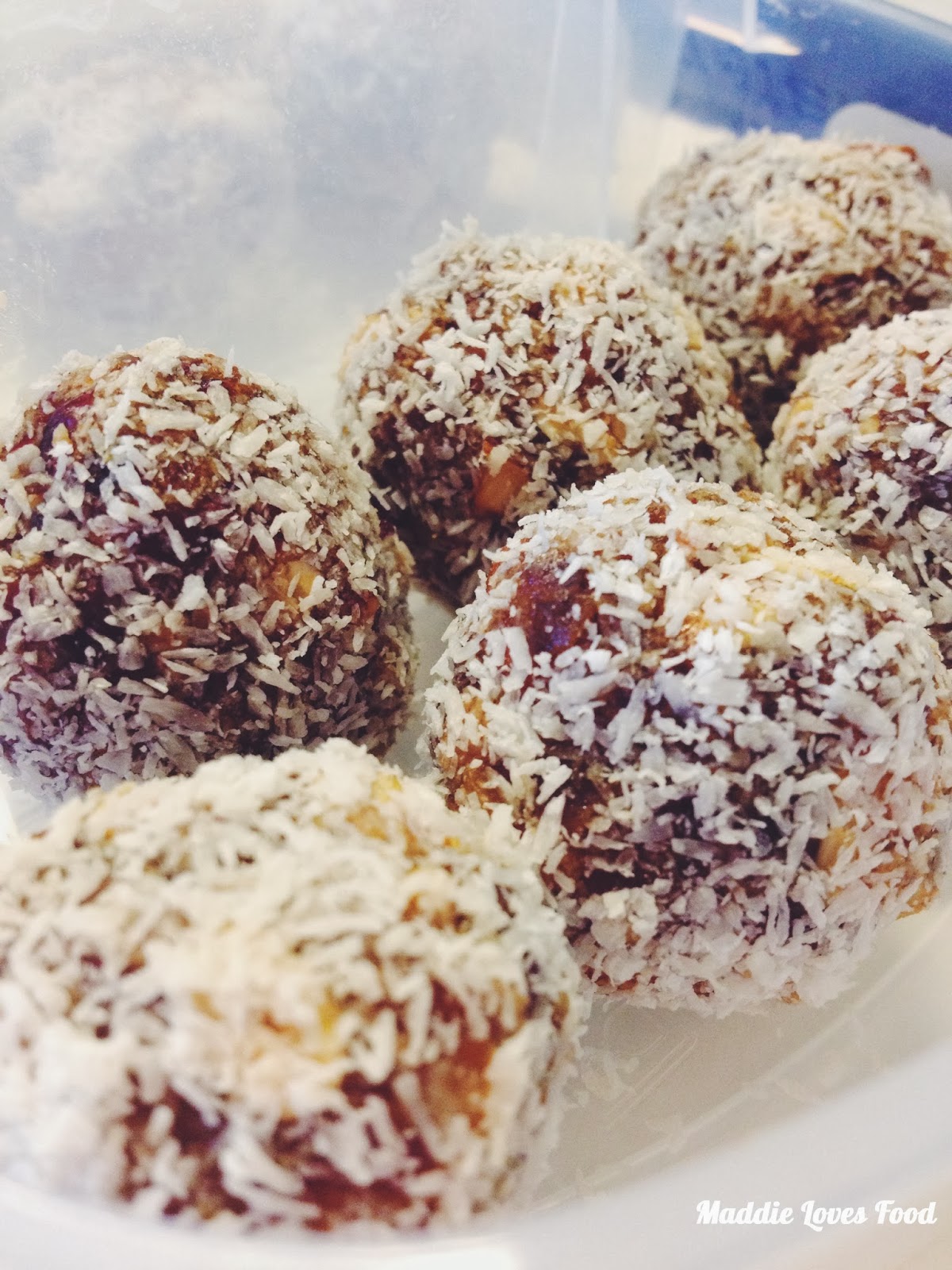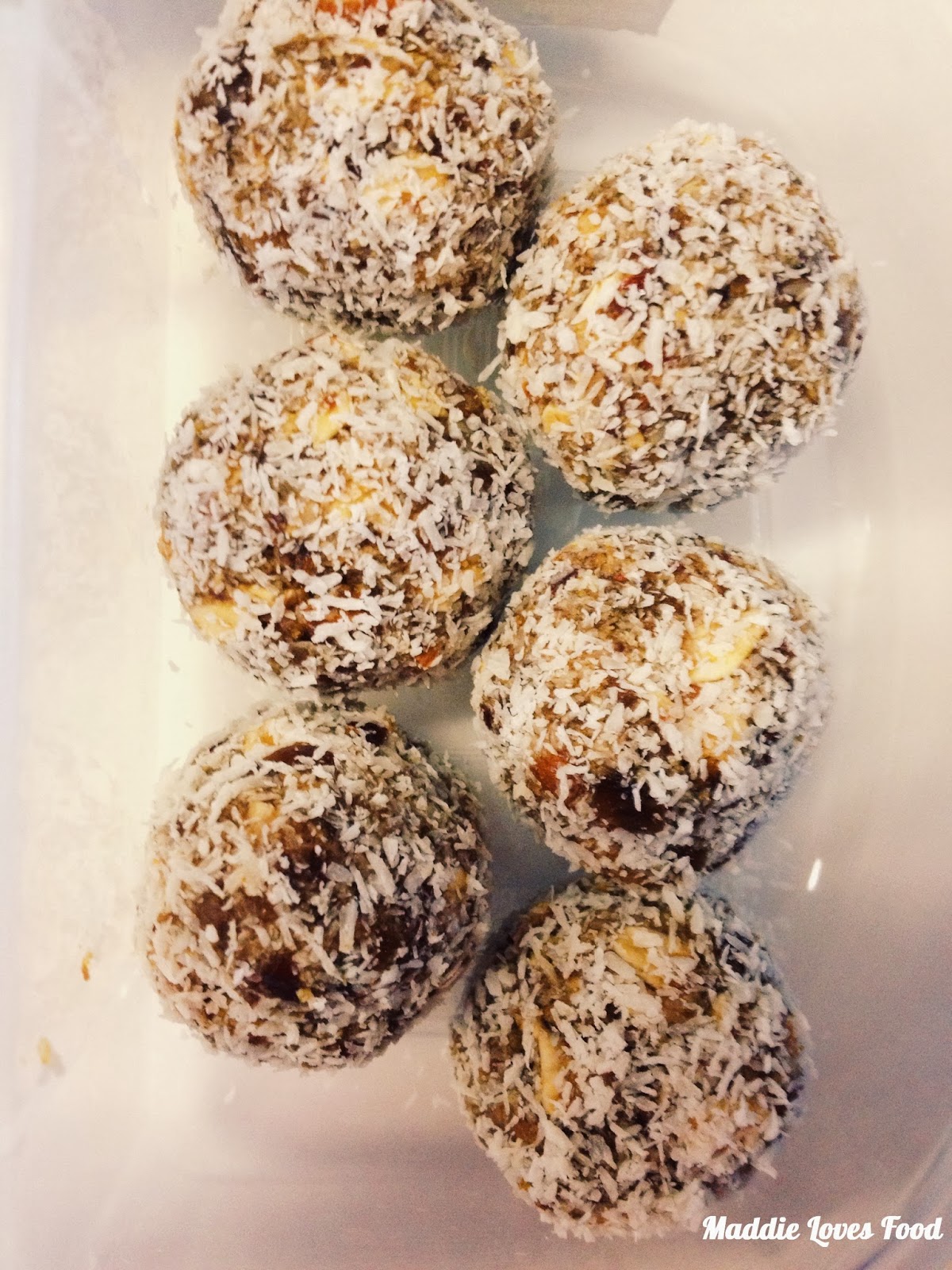 - Extra dessicated coconut, sesame seeds or crushed nuts for rolling