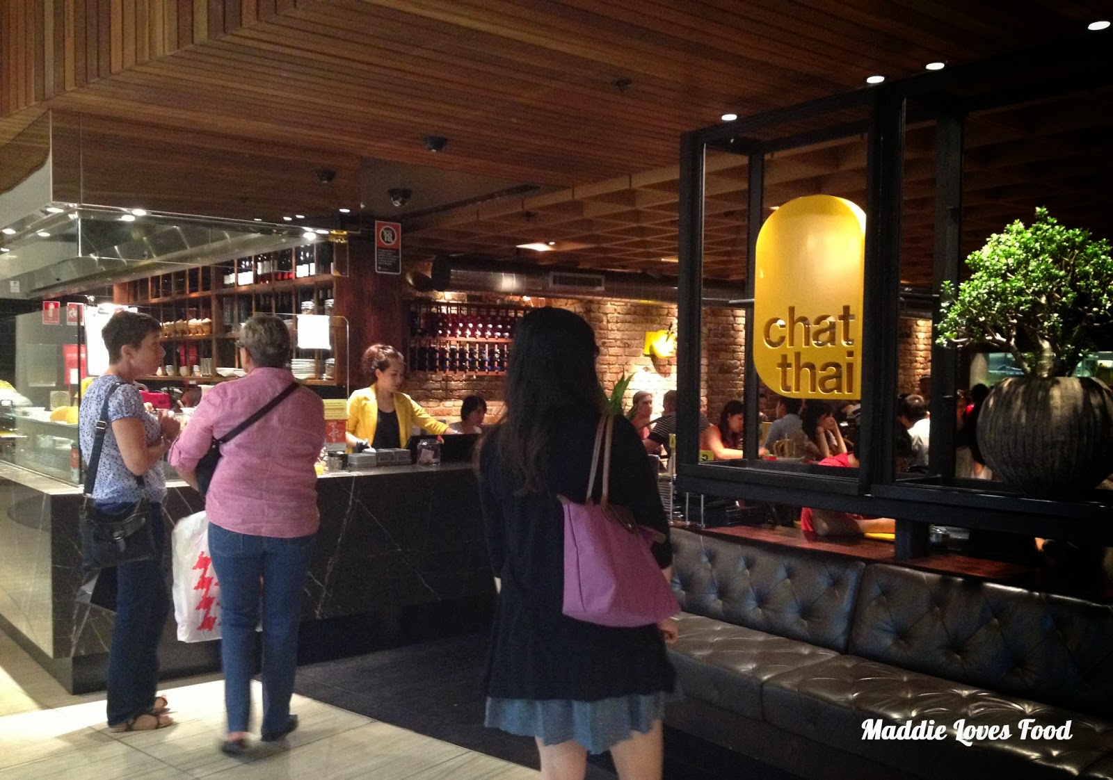 Chat Thai stands among these restaurants, its front kitchen – where chefs make salads and prepare a plethora of authentic Thai sweets – encased behind a glass window where passers-by can stop and take a little peek. I’d come with a good friend for lunch on a weekday, and arriving just after 12pm it was almost already half full. The good thing about this being a restaurant within another complex (ie. Westfield) is that it caters for both those who want a fast, cheaper lunch and those who’d like to enjoy a slightly more sophisticated, lazy lunch. I’d come with a friend, and we ordered a couple of yummy dishes to share and talk over.