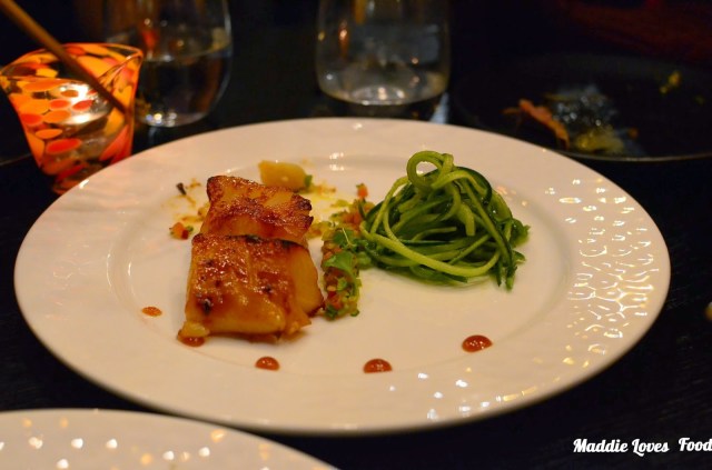 On an earlier visit we tried some of the ‘essential dishes’, the John Dory and Lamb Chops. The John Dory was three medium sized pieces of fish with a creamy ponzu sauce, cucumber ribbon salad and Asian ‘salsa’. The fish was had a caramelised, sweet outer crust and the salsa zingy with the creamy sauce.