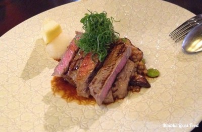The Wagyu Teriyaki is a main consisting of slices of tender wagyu beef cooked medium rare on a bed of buckwheat, shitake and edamame and yakiniku sauce. The beef is mouth-meltingly tender and cooked perfectly and I love the saucy grains of buckwheat.