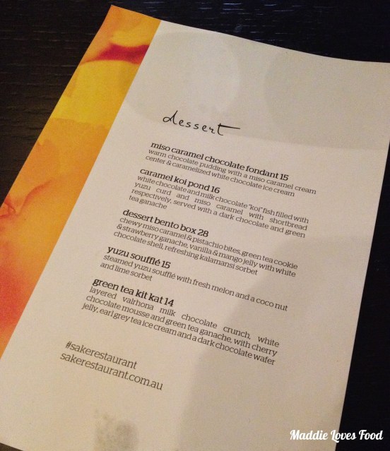 Last Friday it was my birthday, YAY! And because it was my birthday I was was granted the powerful gift of being able choose wherever I wanted to go for my birthday meal. Now usually I’d be scrambling the wide world of food blogs for somewhere a bit special to go, but it being the beginning of exam block I didn’t exactly have much free time to spend oogling over drool-worthy deliciousness. Last year we went to Sokyo for my birthday, and given our family’s penchant for anything Japanese Mum piped up one day that we should visit Sake Restaurant in The Rocks.
