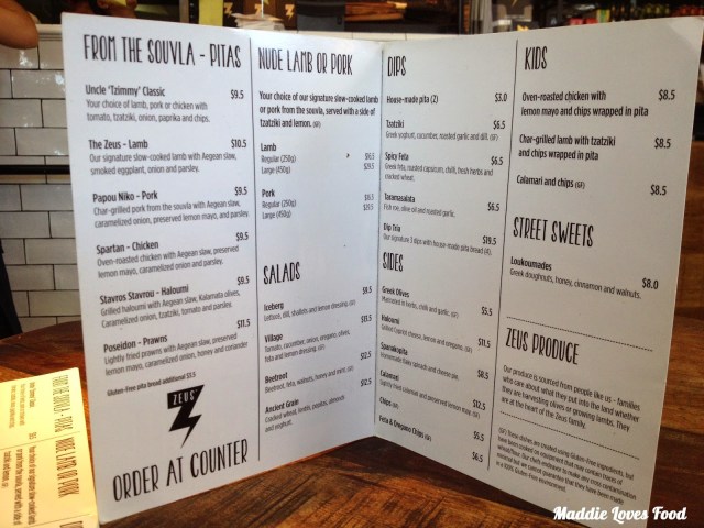 So for a leisurely weekend meal we walked out of Zeus feeling uncomfortably full but extremely happy and satisfied, taking a menu on the way out for when we next need takeaway dinner next. While waiting for our table we saw lots of hungry patrons leaving with customised Zeus paper bags encasing a delicious meal, so buying to take away seems like a pretty good idea if you’re pressed for time or want to enjoy Greek goodness in the privacy of your own home or for a picnic nearby. Zeus Greek Street Food is definitely a local street food favourite that will be kept in mind for future pita cravings to come.