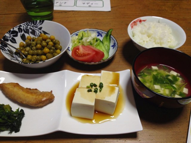 The barrier that language formed, food broke down. After settling in with our bags, we sat down to a snack of oranges and anko wagashi, red bean mochi encased in a layer of sesame. They were one of my favourite sweets in all the time I spent there, and I even bought a box home upon my return to Australia. We spent that afternoon helping our host mother, Setsuko, peel and chop vegetables for dinner.