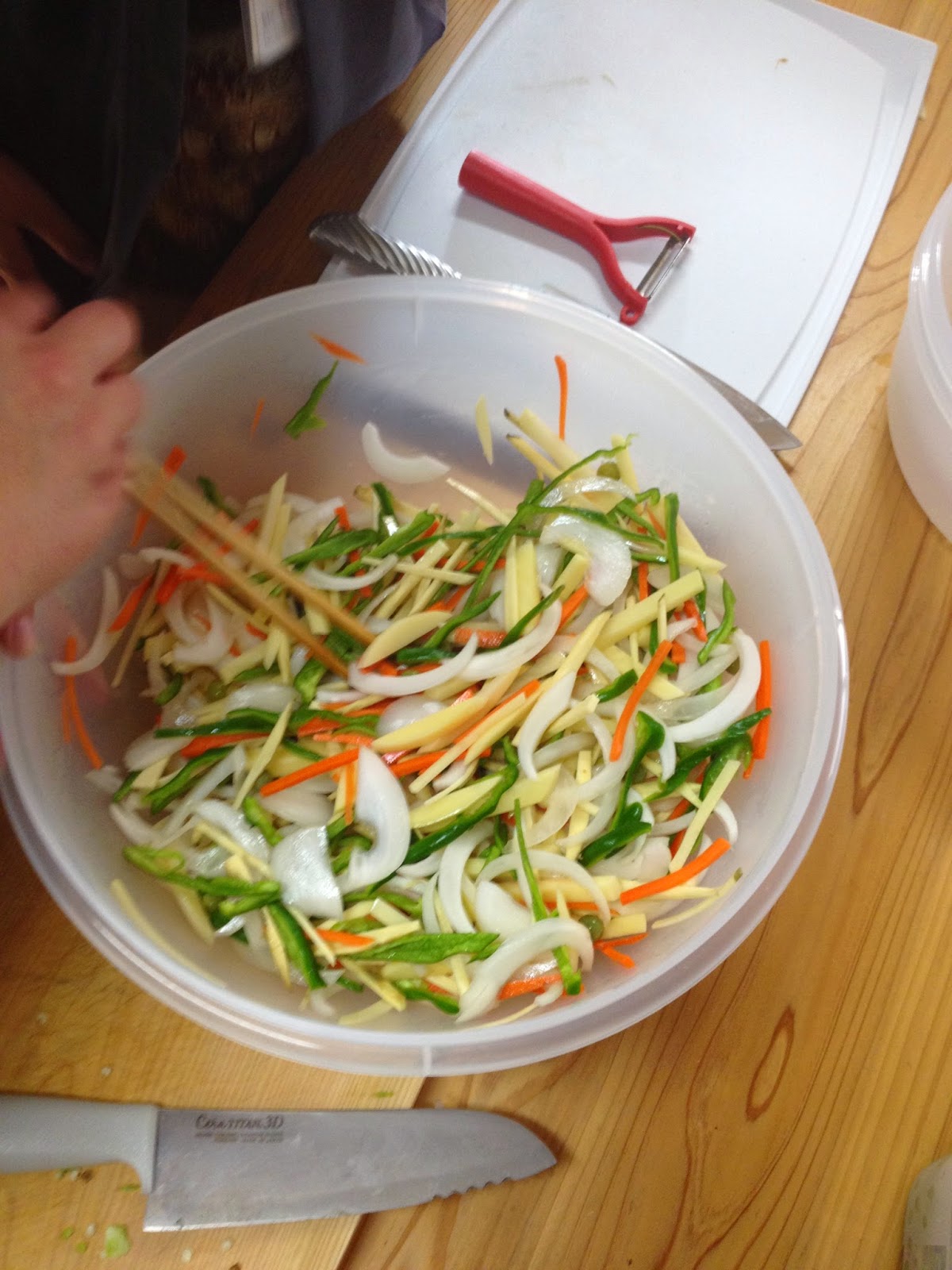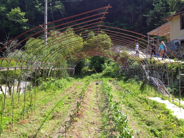 As part of our farm stay, we had a farm experience helping our host parents weed their vegetable garden. It was a beautiful, cute little area, arched over with wire stakes. Upon weeding we got to glimpse the wonderful produce they were growing right in their own front garden – baby eggplants and sweet, green peppers, some of which we’d cooked with the previous night in the kakiage.