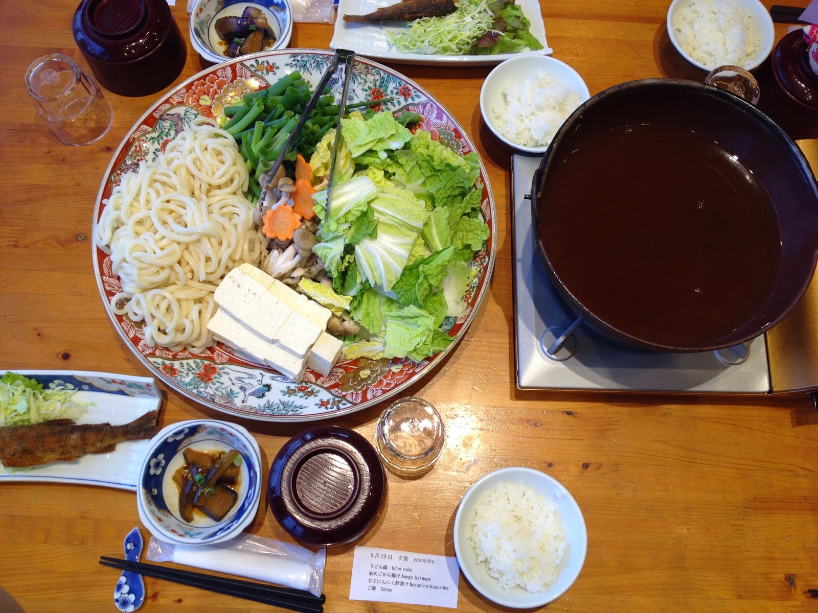These were cooked gently in the simmering stock, then placed in a bowl along with some of the infused broth and eaten in small portions. While being enjoyed, more ingredients are added to the pot so that once everyone has finished eating, they are able to move on to another hot bowl. Typically one begins with the vegetables to build up the stock, then add the noodles last so that they are able to soak up the wonderfully flavoured broth.