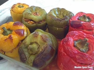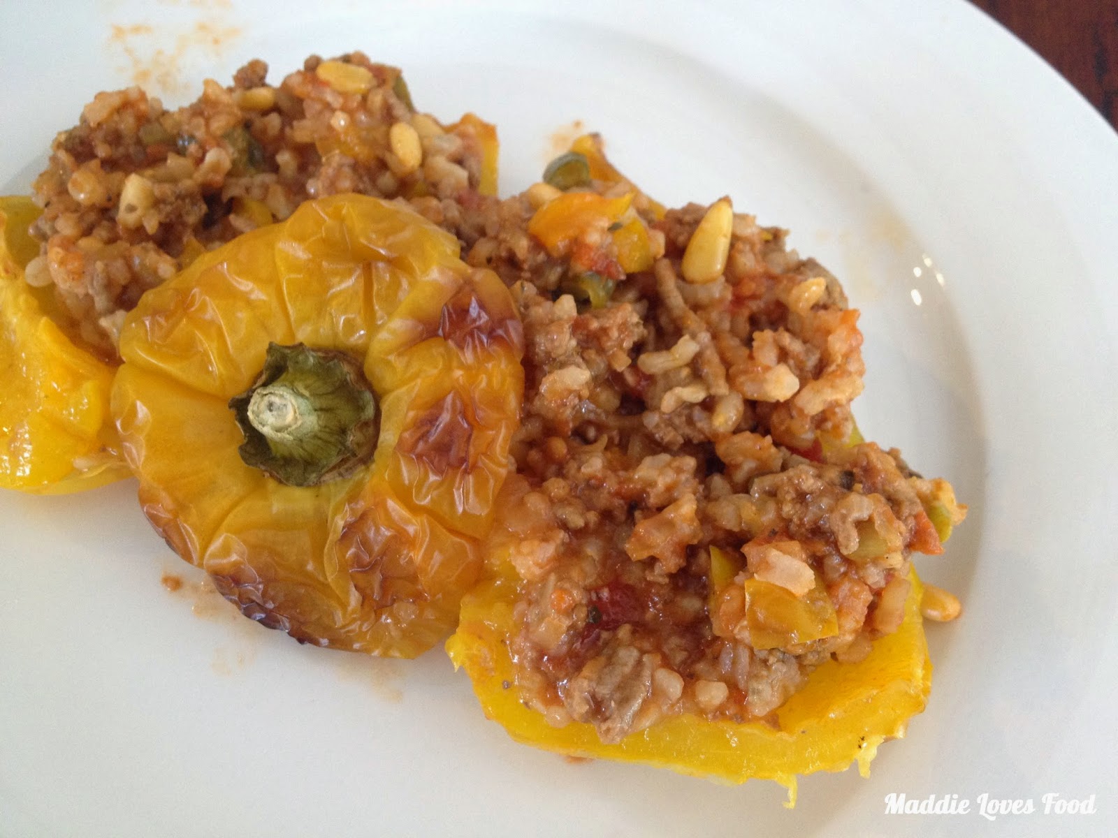 I’d never really stuffed anything before other than a chicken, but this dish was surprisingly easy to make. A stuffing of beef mince, rice, tomato and vegetables was sauteed on the stove, stuffed into hollowed out capsicums and baked in the oven with a little bit of stock for 40 minutes.