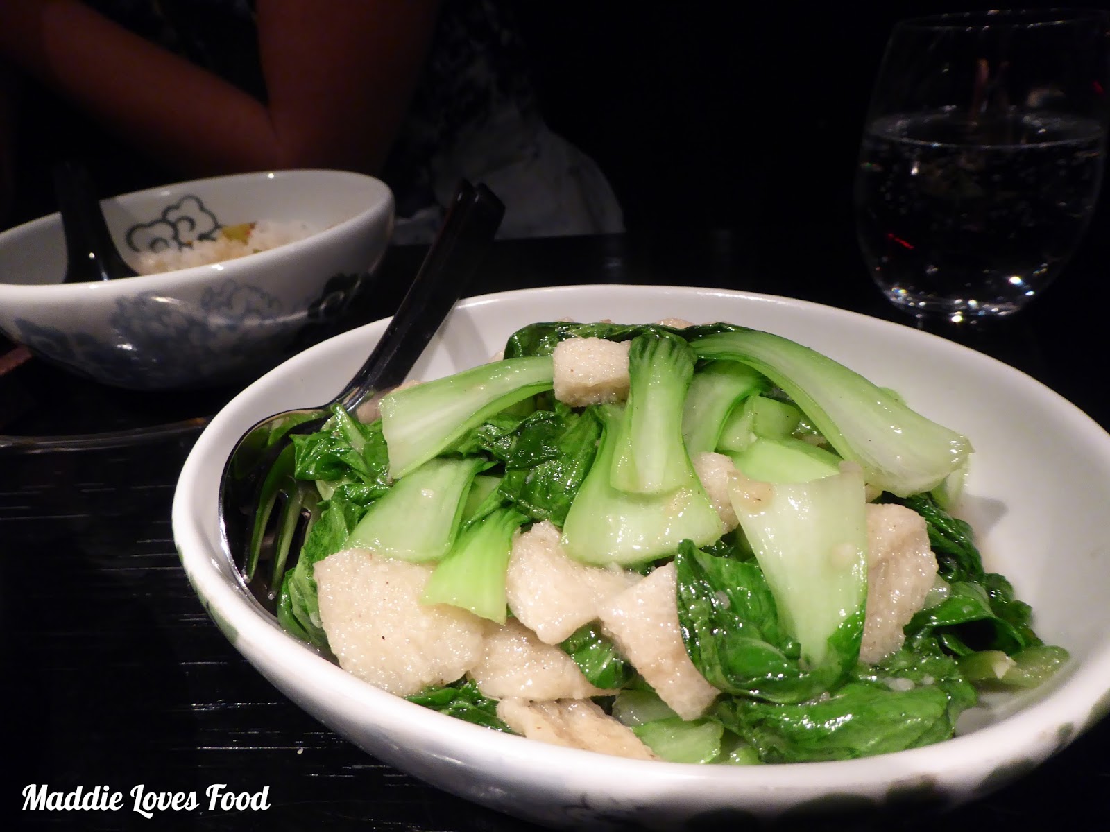 Sweet, fresh baby bok choy is stir fried with garlic and squares of bamboo pith. The greens retain a good crunch, but it’s the bamboo pith that interests us – it’s texture is spongy, and the way that it soaks up all the flavours of the sauce reminds us of soft, deep-fried tofu sheets.