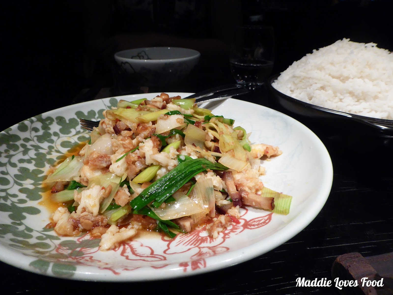 Unctuous cubes of beef are stir-fried to an alluring brown, with bits of caramelisation on the outside, while biting into it reveals a slightly pink, moist meat. It’s wonderfully tender, along with crunchy, sweet onion and ribbons of spring onion. It’s salty and sweet, but the cumin flavour is not very noticeable, although a degree of depth is added by the fermented chilli, which isn’t too spicy.