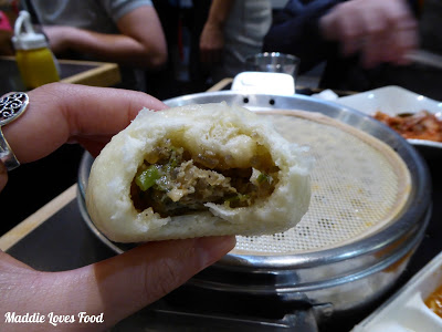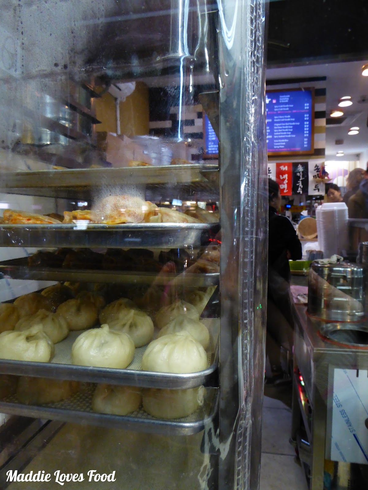 Among the many, many Korean BBQ restaurants in Strathfield, maintaining its presence on a relatively small, narrow corner shopfront, lies The Mandoo. It’s a handmade dumpling and noodle restaurant, with cute dumpling characters dancing on the front windows above a cluster of Korean and English menu items.From one window you can glimpse trays and trays of freshly made buns and dumplings lined up ready for the steamer.