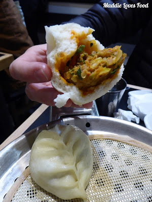 Both the pork and kimchi fillings are the same for the dumpling and bun – the pork is a mix of clear noodles, flavoursome pork and shallots, and the kimchi has a slightly more paste-like, orange-tinted filling as well as the noodles and pork. The bun dough is fluffy and perfectly pleated, plump and steaming hot.