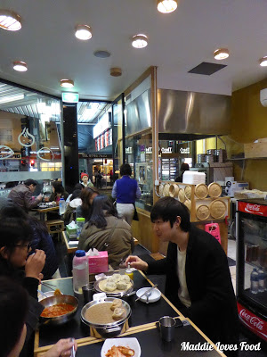 Among the noodle soup items on the menu are cold noodle soup, spicy chewy noodles, kimchi noodle soup and beef noodle soup. We glimpse many other diners enjoying dumpling soups, which come in a range of spice levels, as well as authentic spicy cold noodles.