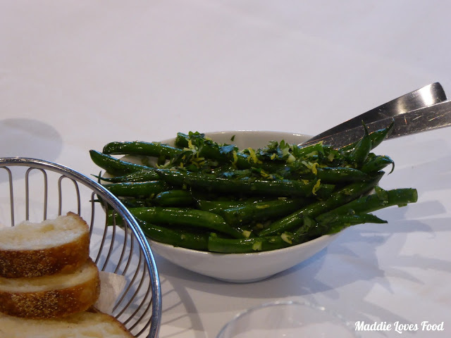 Vibrant, gently steamed green beans are given a lift by punchy gremolata. A wonderfully fresh side to accompany the shared main dishes. A second side of sautéed cavolo nero, garlic and pinenuts (not pictured) is a lot punchier, with a warming hot chilli kick.
