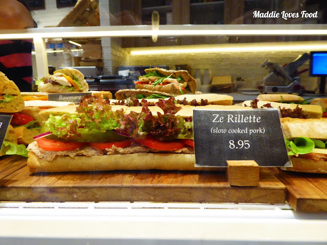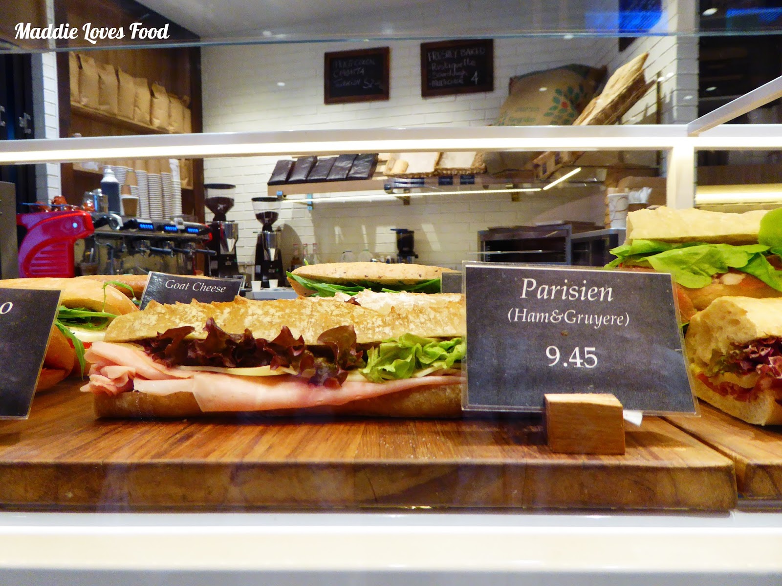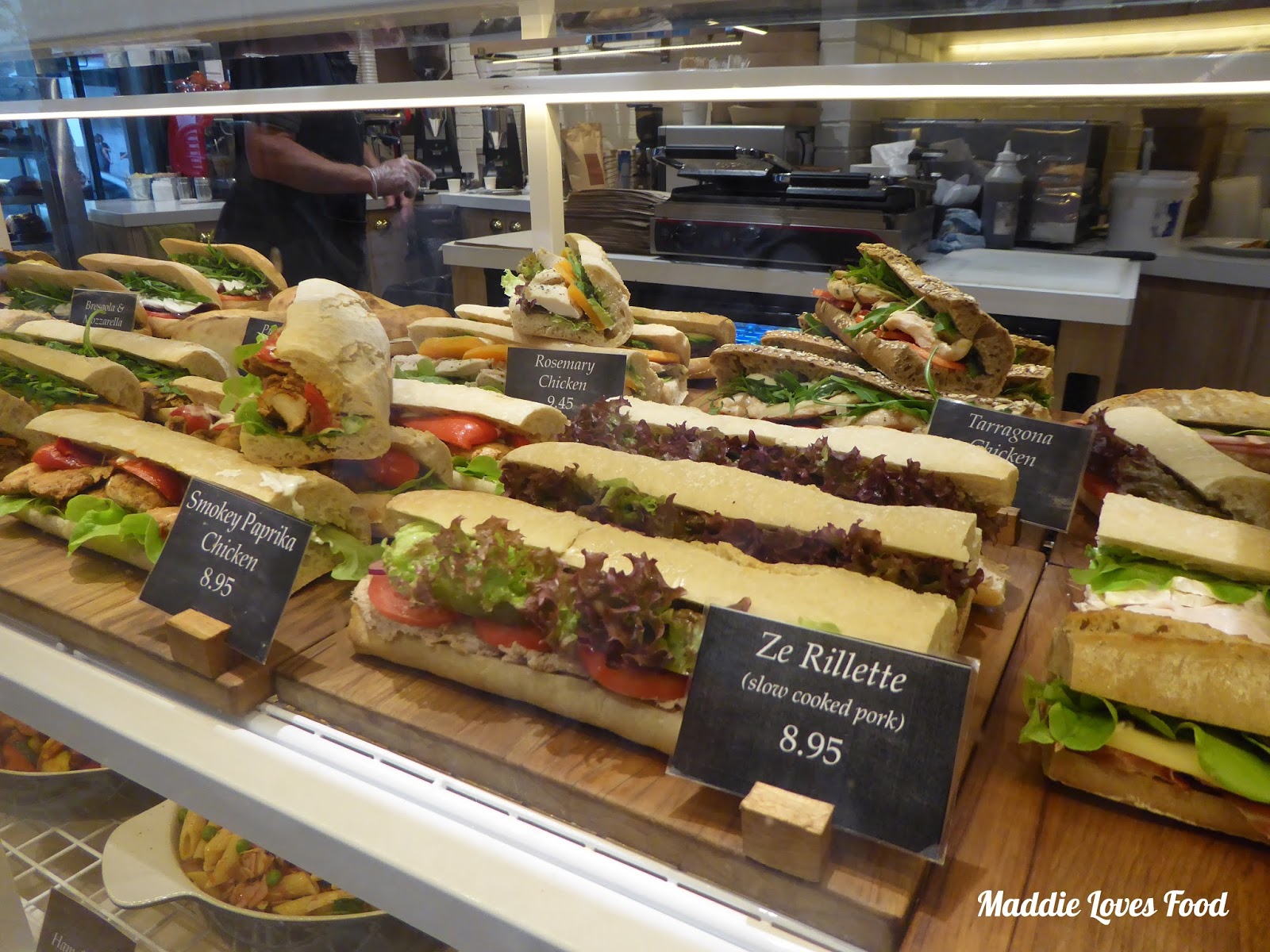 There are over 10 different varieties of sandwich offered on any day, all made using French-style bread that is baked fresh daily. Classic baguette fillings such as ham and gruyere and tarragon chicken sit alongside creatively-named options such as Ocean Wonder and Frenchy Turkey.