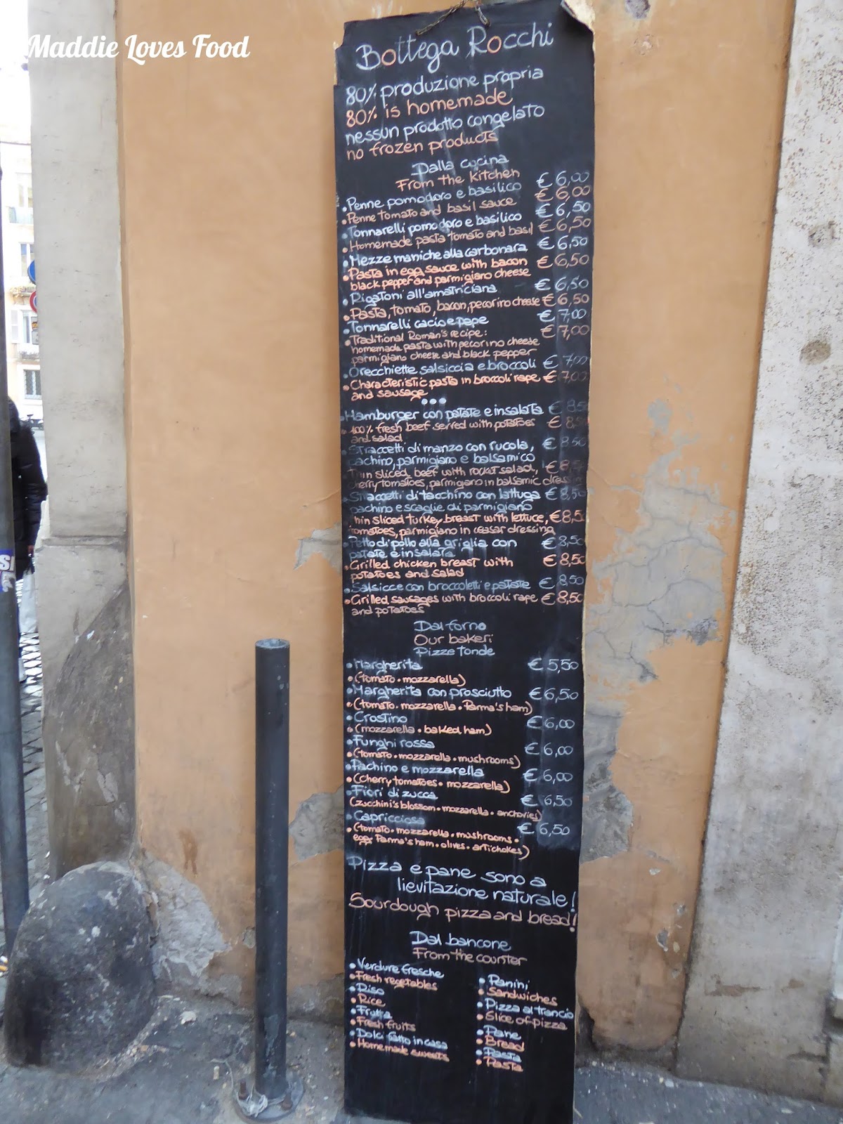 Our tired legs ached by the time we stumbled upon Bottega Rocchi, just off the main street near Piazza di San Macuto and en route to the Pantheon. It is a takeaway eatery and casual lunch spot, with relatively cheaper prices compared to other nearby restaurants.