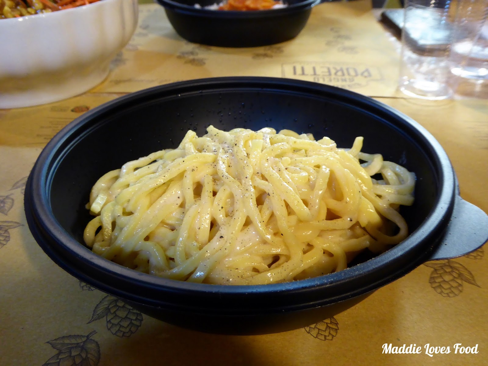 chitarra) which produces a square-like cross-section. The thickness of the pasta gives a noticeable bite to every strand and lathers up the slick, cheesy sauce beautifully. It’s best eaten hot so that the cheese is still slightly gooey. The combination of cheeses is just perfect and the pecorino is not too overpowering.