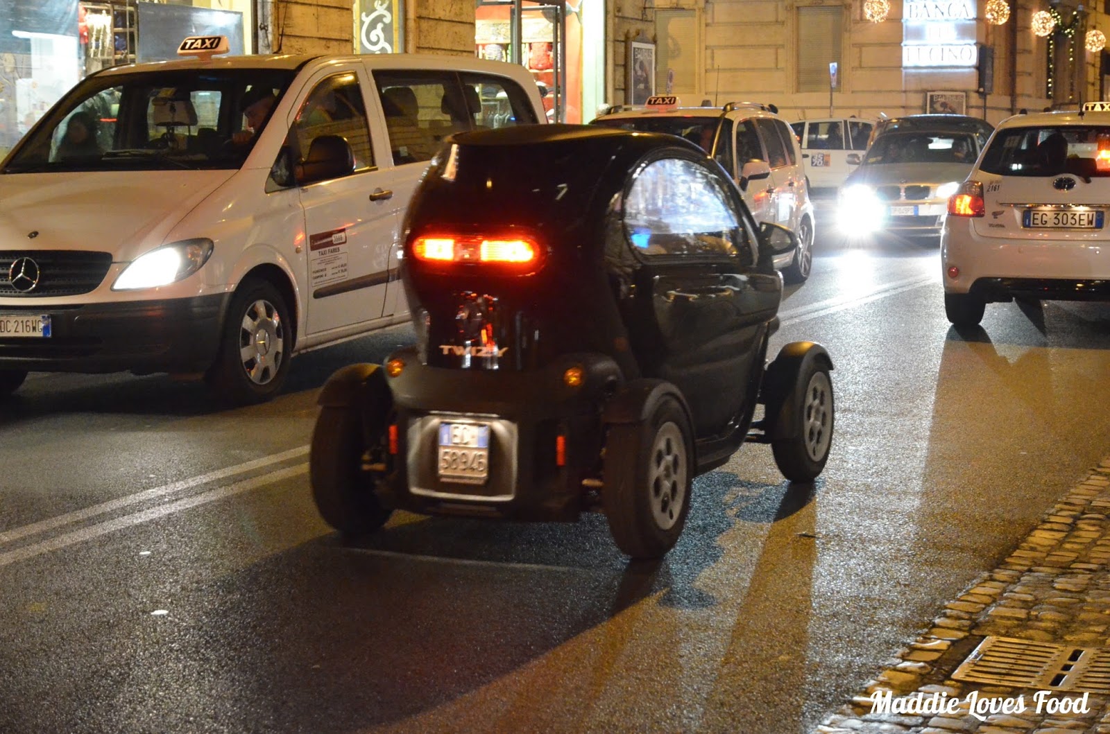 This bemusing vehicle drives past us one night and we stop and stare after it for a while. Is it a form of motor bike, or a one person mini smart car? Who knows. Only in Italy.