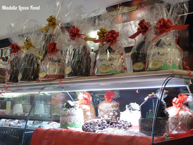 The counter is filled with fresh cornetto (horn-like pastries not dissimilar to croissant, only slightly sweeter and more bread-like), cannolo, biscotti and plump, custard-filled doughnuts. Lining the counter tops are Christmas cakes, wrapped and ready for the festive season.