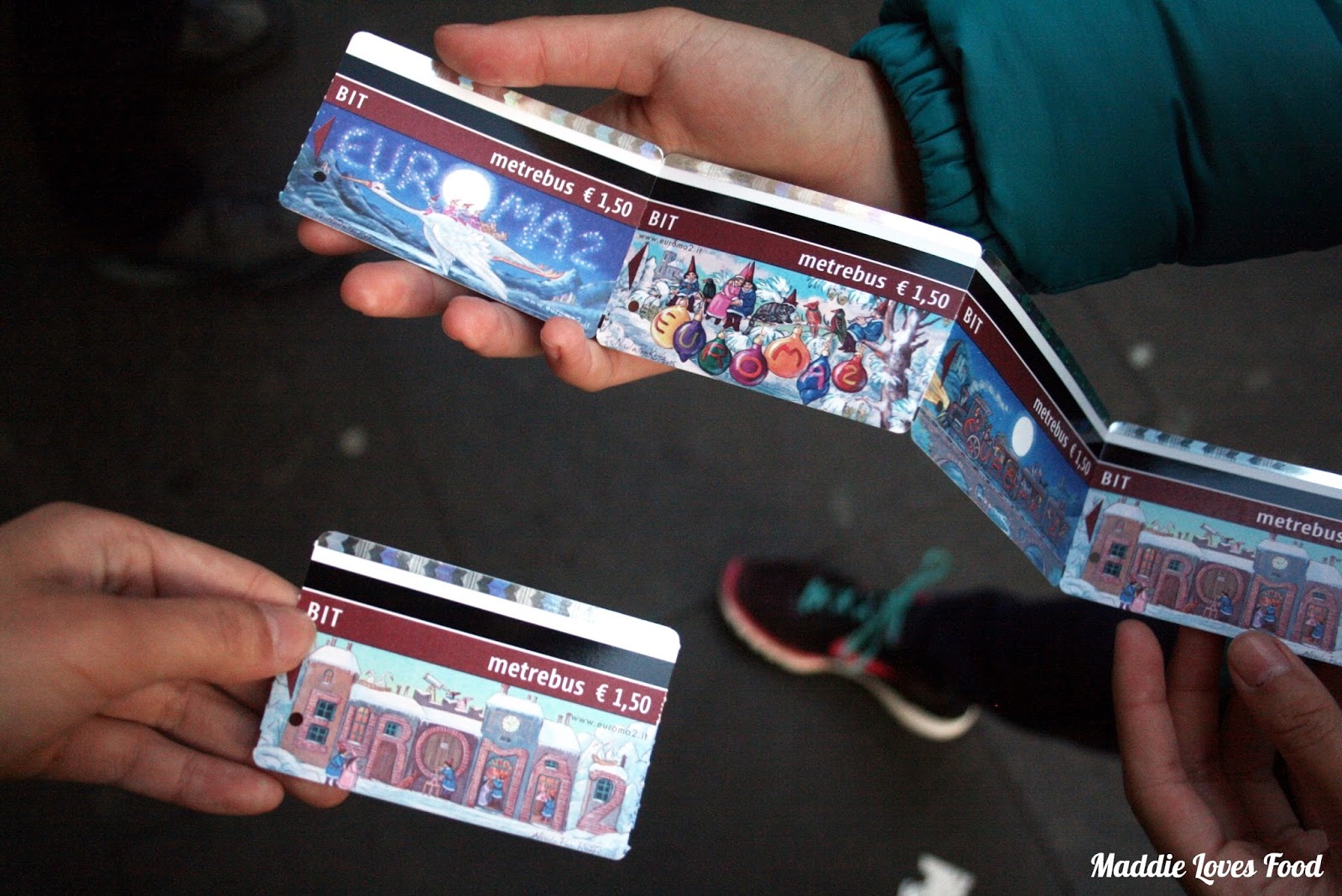 Bus tickets can be bought at any corner-store news stand, which looks resembles a pop-up stall selling magazines and newspapers along with other random knick-knacks. Tickets cost 1.50EU each, and once validated, can be used for any number of trips within a one and a half hour time period. However, we find that the Winter weather is perfect for walking – a very convenient way to warm up and burn off all that pizza and pasta at the same time!