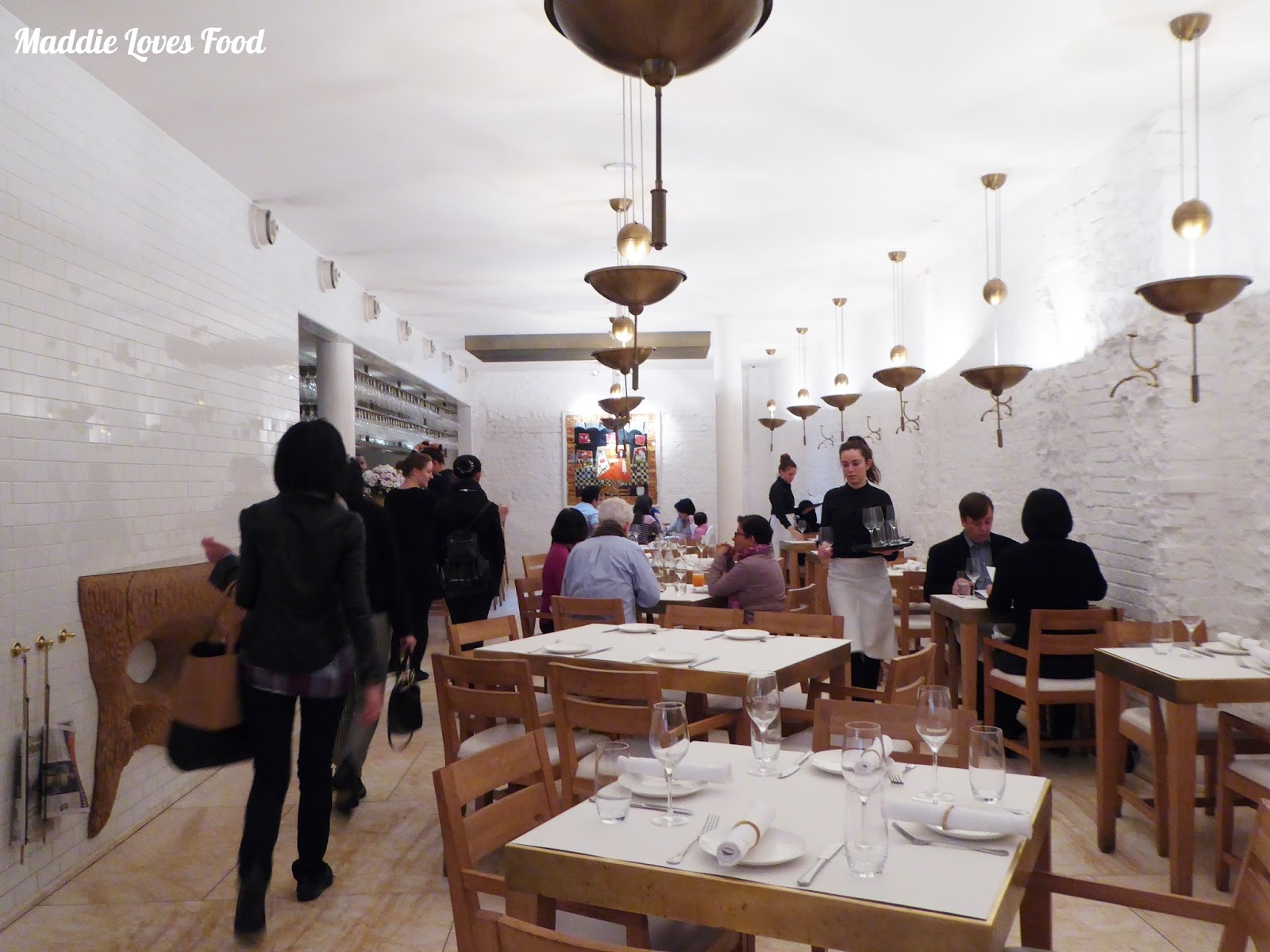 Nopi is just one of his handful of restaurants and delis, and is located a short stroll off Oxford street in downtown Soho. The atmosphere has that same warmness as the popular gourmet Ottolenghi delis, and there is a clean, Scandi-esque vibe about the white, brass and timber furnished dining space. Stairs off to the side lead down to the busy kitchen and more casual communal tables.
