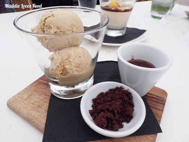 Even better is the glossy fudge sauce, which comes in its own little pot so you can pour it over yourself and watch as it trickles over the latte-coloured ice cream. The dates add a special fruity sweetness that is far different to the sweetness of the dark chocolate soil. So. Damn. Good.