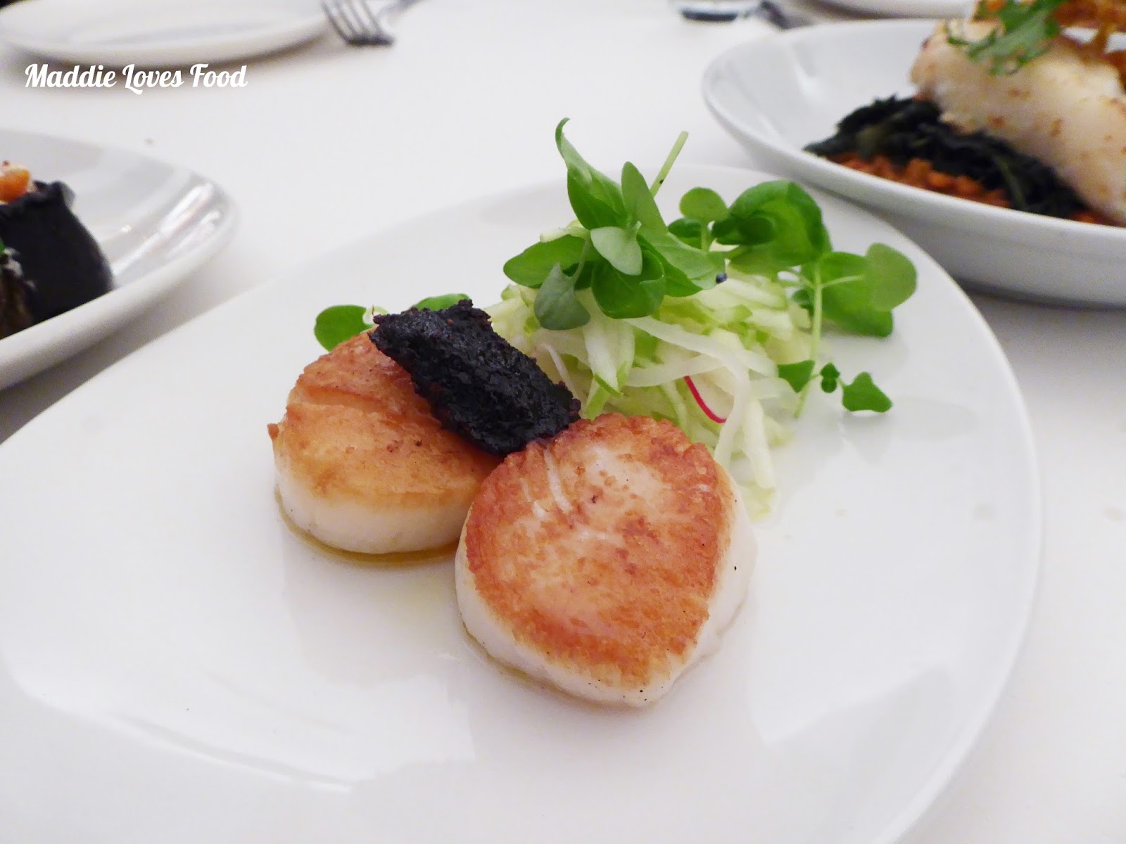 Seared scallops, pickled daikon, chilli jam (£12.90)