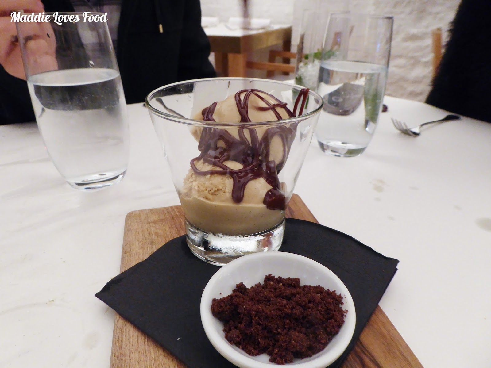 Pearl barley and malt ice cream, chocolate soil, date fudge sauce (£8.50)