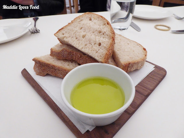 The home-baked loaf of bread that we spy upon arrival is sliced up and placed on our table as we sit down. It has a wholesome, chewy crumb and is simply dipped in sweet extra virgin olive oil.