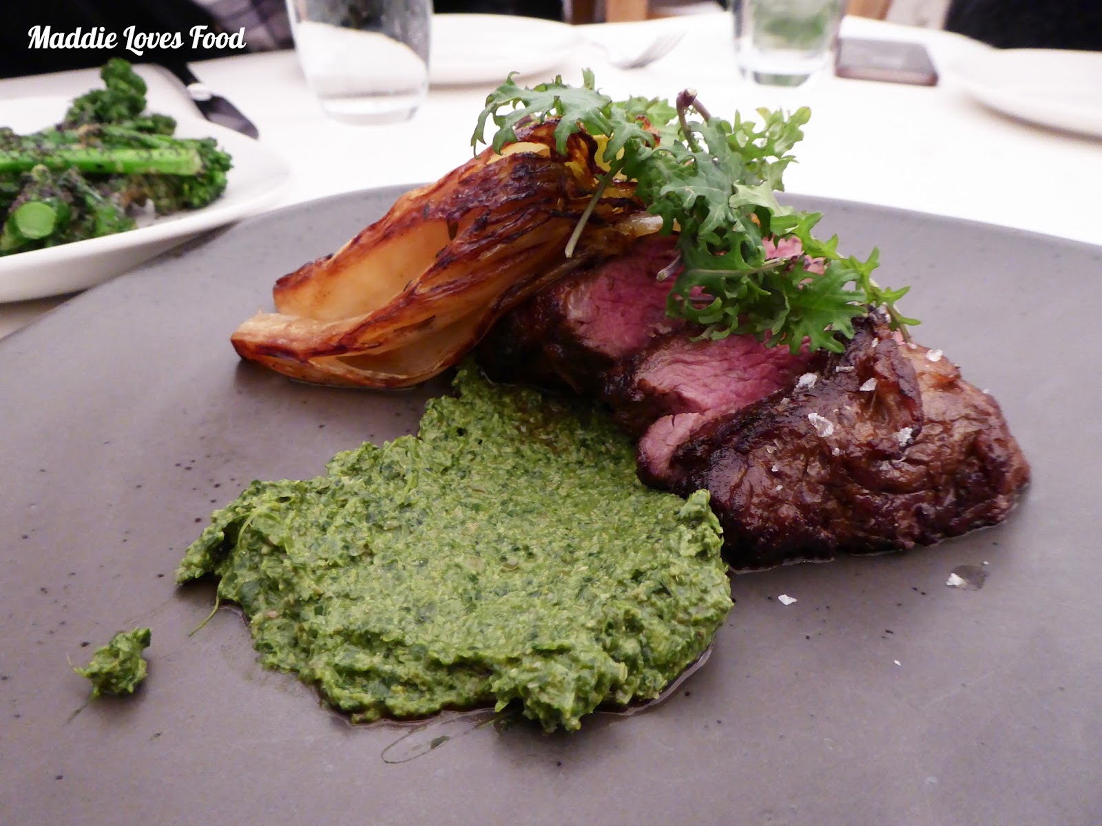 After three weeks away from sunny Sydney, this lamb brought our tastebuds back home. Cooked to a medium pink, it’s tender and juicy, and the sorrel pesto adds something quite different to the dish. We are left a little confused by the braised chicory, which is so heavy on vanilla that it almost tastes like vanilla ice cream.