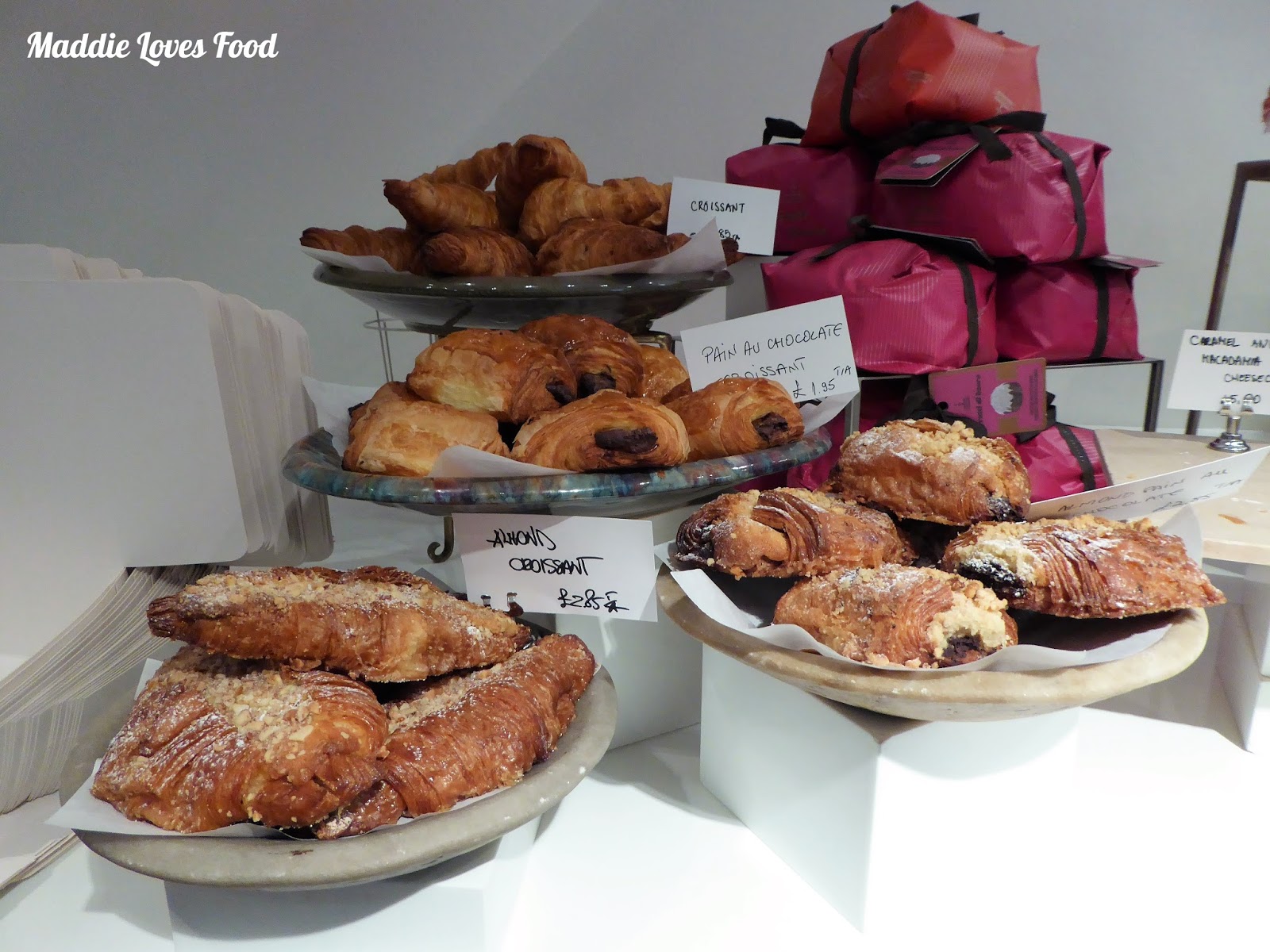 The baked goods on display feature favourite sweet combinations like rum and chocolate, orange and almond and berry and mascarpone, although the play on Mediterranean and Middle Eastern flavours that Ottolenghi is known does shine through little, too. We sample some freeze-dried raspberry meringues and contemplate taking some cakes home for dessert.