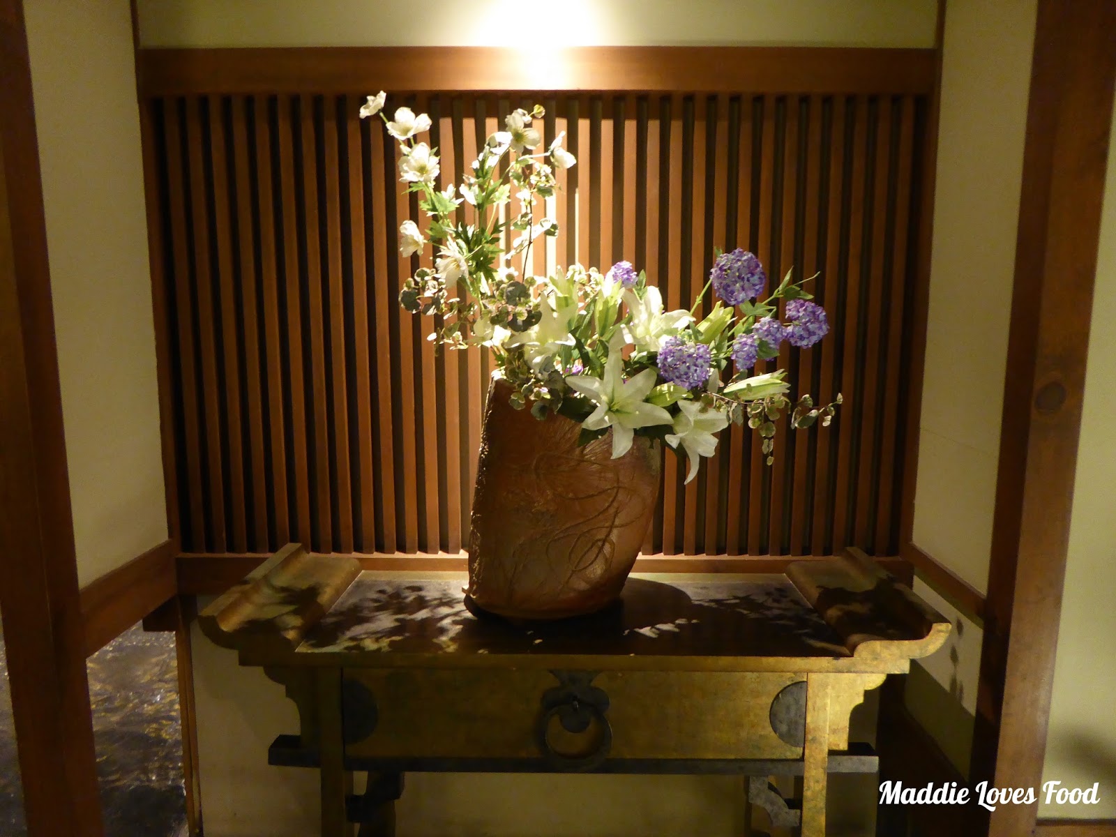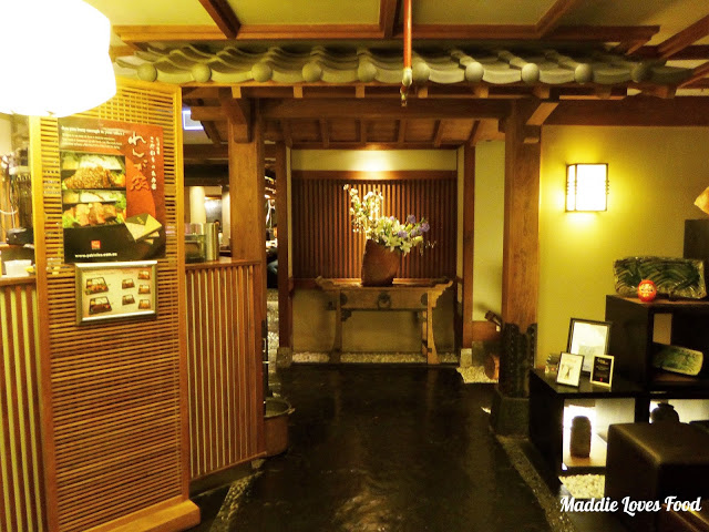 The dining space is separated into two main areas by wooden beams and sheer white screens, emulating the atmosphere of a serene Japanese home. The main area is home to long, communal tables perfect for larger groups, while the second space has a more intimate feel.
