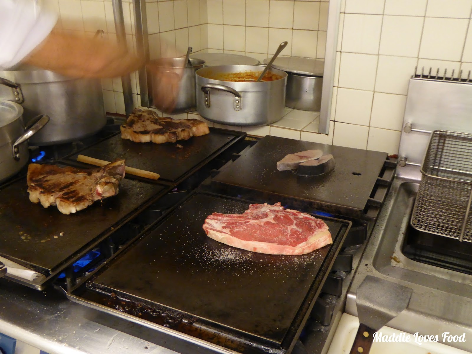 Cooked using pure certified Chianina beef, this is one monster of a steak. The chefs in the kitchen are lovely enough to let me come in and watch as they expertly char and flip each steak as it’s cooked to order. Although this is traditionally cooked to a deep pink, we request for it do be more on the medium side (a rookie preference, I know), and they happily oblige. After the meat has had its grill time, it’s placed on a large plate and expertly cut into to make for easy sharing.