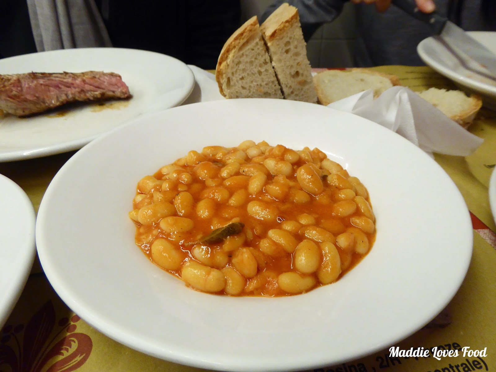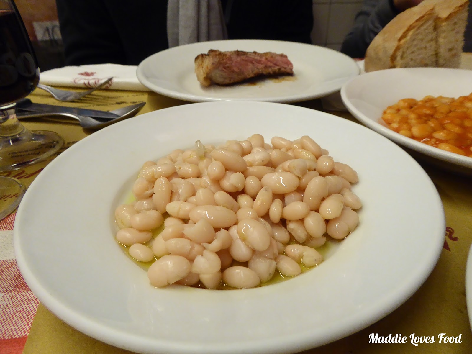 Tuscan white beans are served humbly with only a slick of oil. It is surprising how comforting these beans are, and how well they also go with the rich meat.