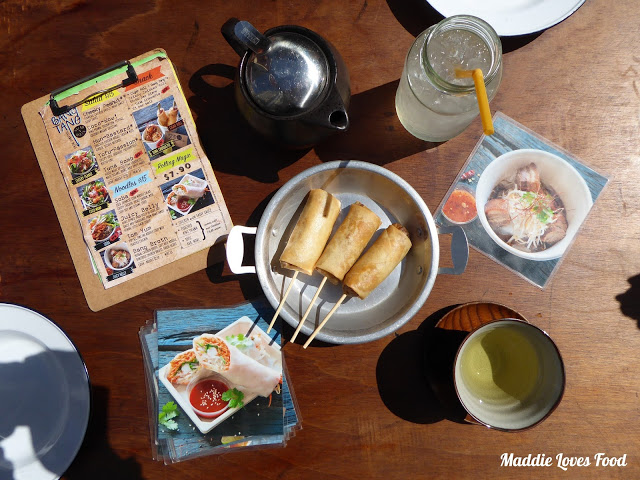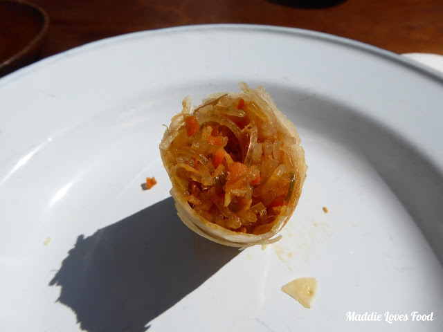 Drinks are unique and intriguing. We try the homemade fresh lemongrass, ginger and mint tea, as well as the lemongrass sparkling drink. Both are refreshing and delicious; the tea has a nice hit of warming ginger, while the sparkling drink is laced with the tropical fragrance of lemongrass. Other offerings include a butterflypea, honey and lemon tea, home-brewed Egyptian Iced Tea and Vietnamese iced coffee.