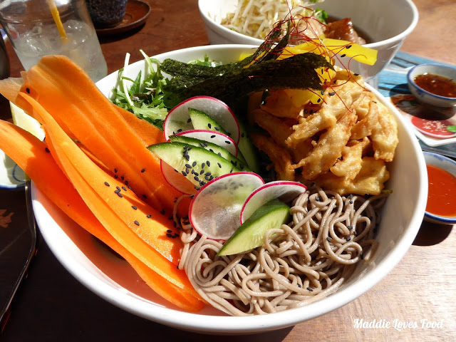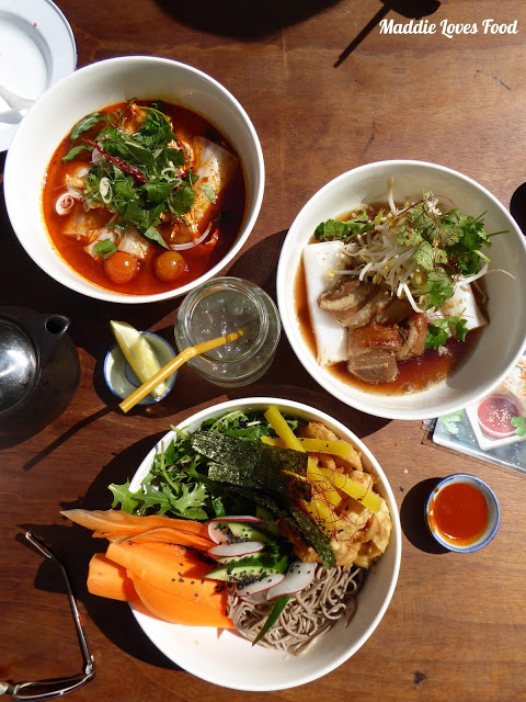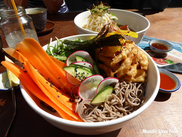Owner Nat tells us that their focus is on serving fresh, healthy Indo-Asian inspired food that does not compromise on flavour. There are Thai, Vietnamese and Japanese influences in the menu, which is quite short and consists of four salads, four noodles and a few snacks which include crispy spring rolls and tuna croquettes. This enables them to work the considerably small kitchen space to their advantage.