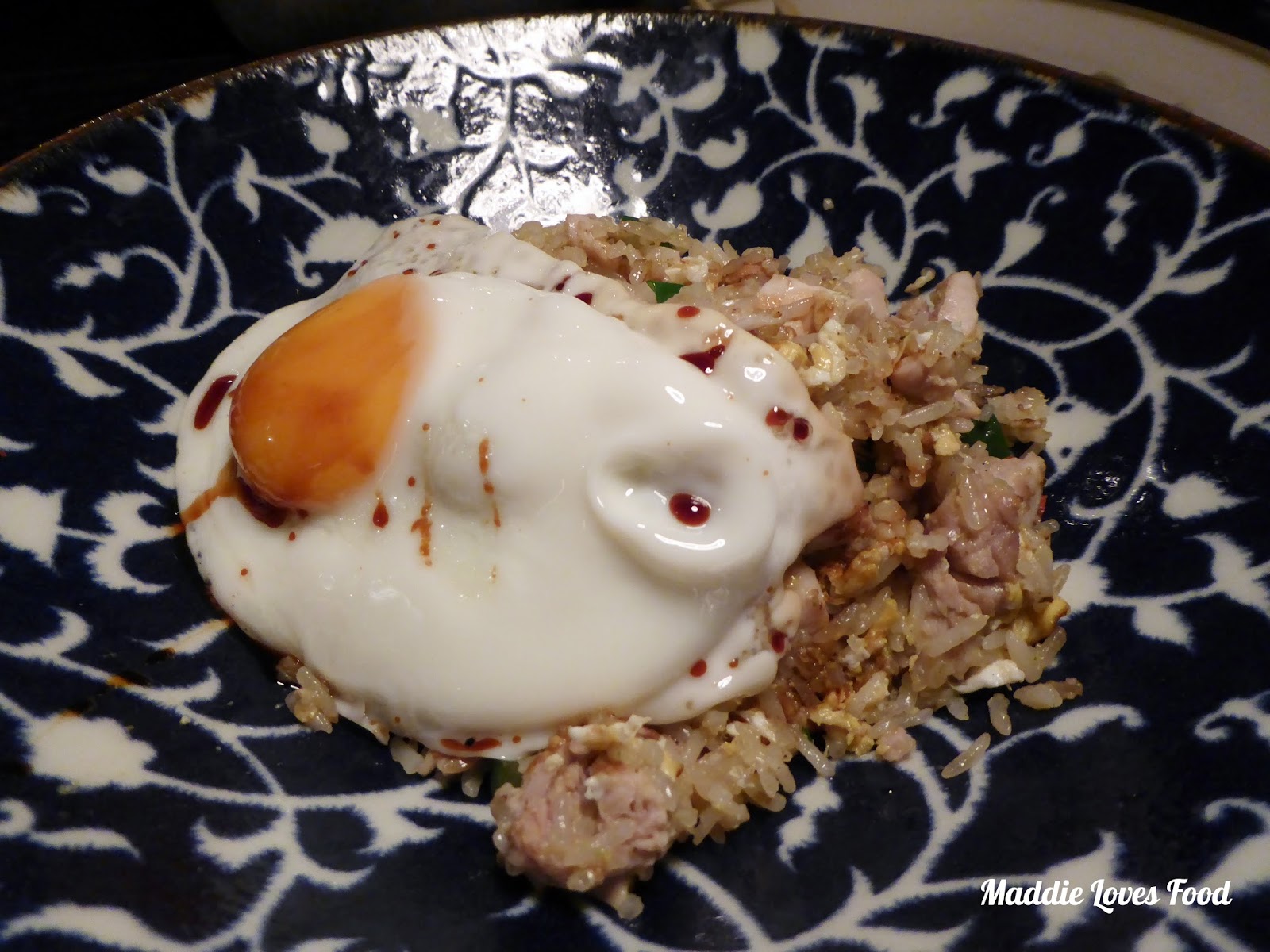 This is no ordinary fried rice. This is cooked in the style of chicken rice, each grain slicked with the pungent, warming aroma of ginger that the classic Hainan dish is known for. It’s a really good, smoky fried rice, flecked with flavoursome pieces of chicken, omelette and spring onion. The sunny side up egg tops it off nicely, allowing you to mix in the yolk to add an extra layer of silkiness.