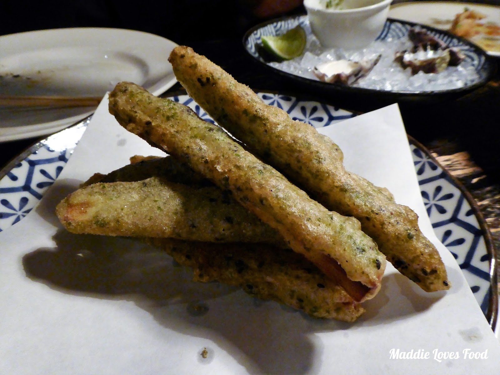 This is not your typical tempura. Long batons of eggplant are covered in a golden, beer-batter like crust that is slightly heavier than that of traditional tempura. They’re seasoned with lots of salt and vinegar, and the result is a dangerously moreish, silky vegetable finger food that has all the very best qualities of a salt and vinegar chip. The fact that it’s eggplant makes you feel a little less guilty about fried food!