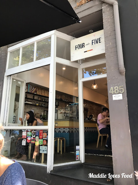 We are walking down Crown Street one Sunday, looking for somewhere to eat lunch, when we come across Four ate five. At just past 12pm, the small, lively joint full to the brim with people enjoying a lazy Sunday coffee and brunch.