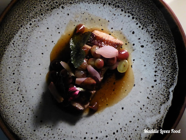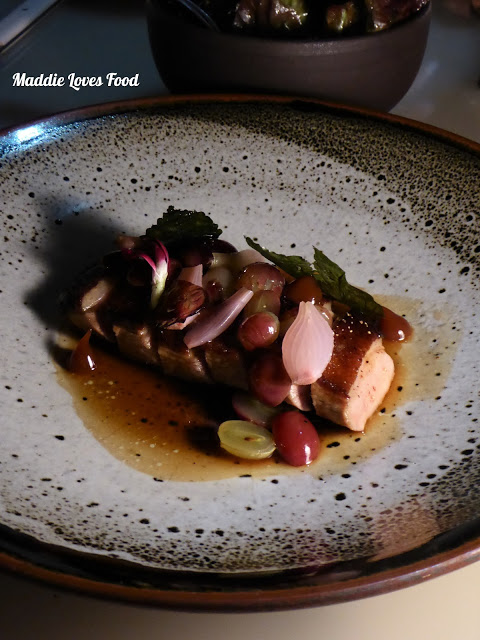 This duck is woven with the robust, warming flavours of star anise, plum and soy. Pickled purplette onions, fresh baby red grapes, currants and Kampot pepper are the perfect accompaniments to cut through the richness of the juicy, tender meat. The addition of ume lends a fruity dimension that is a nod to the ideal combination of duck and plum sauce. Thoughtful and refined.
