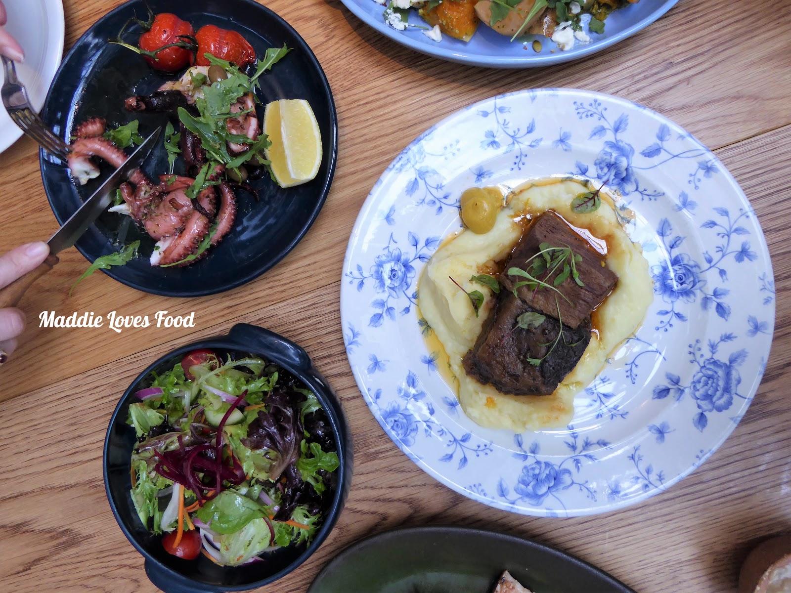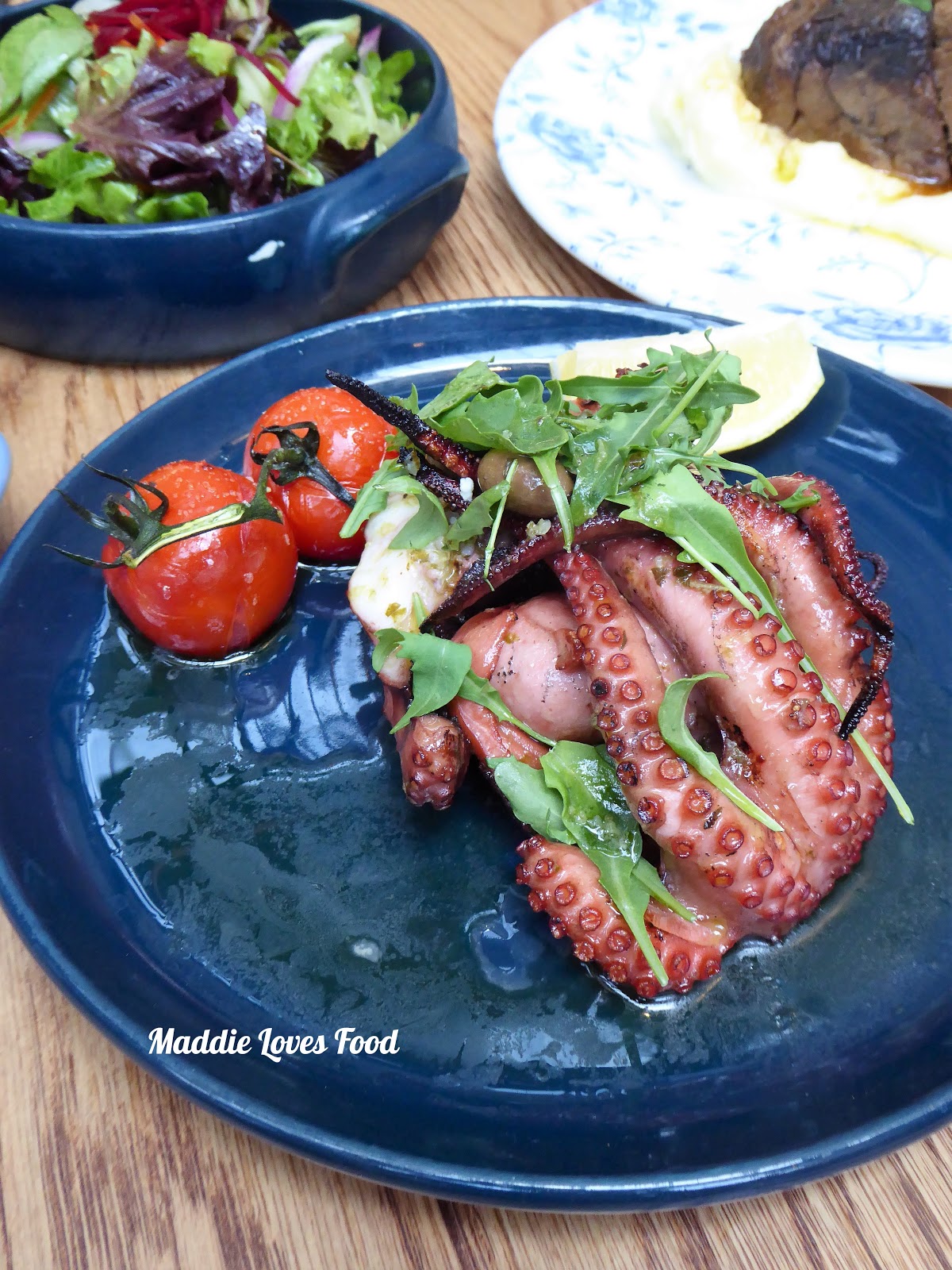 Baby octopus is treated with the utmost respect, cooked simply over the grill and served with roasted baby tomatoes, confit olives, gremolata and lemon. The ends of the tentacles are crispy and charred while the upper parts and the body are tender and meaty.