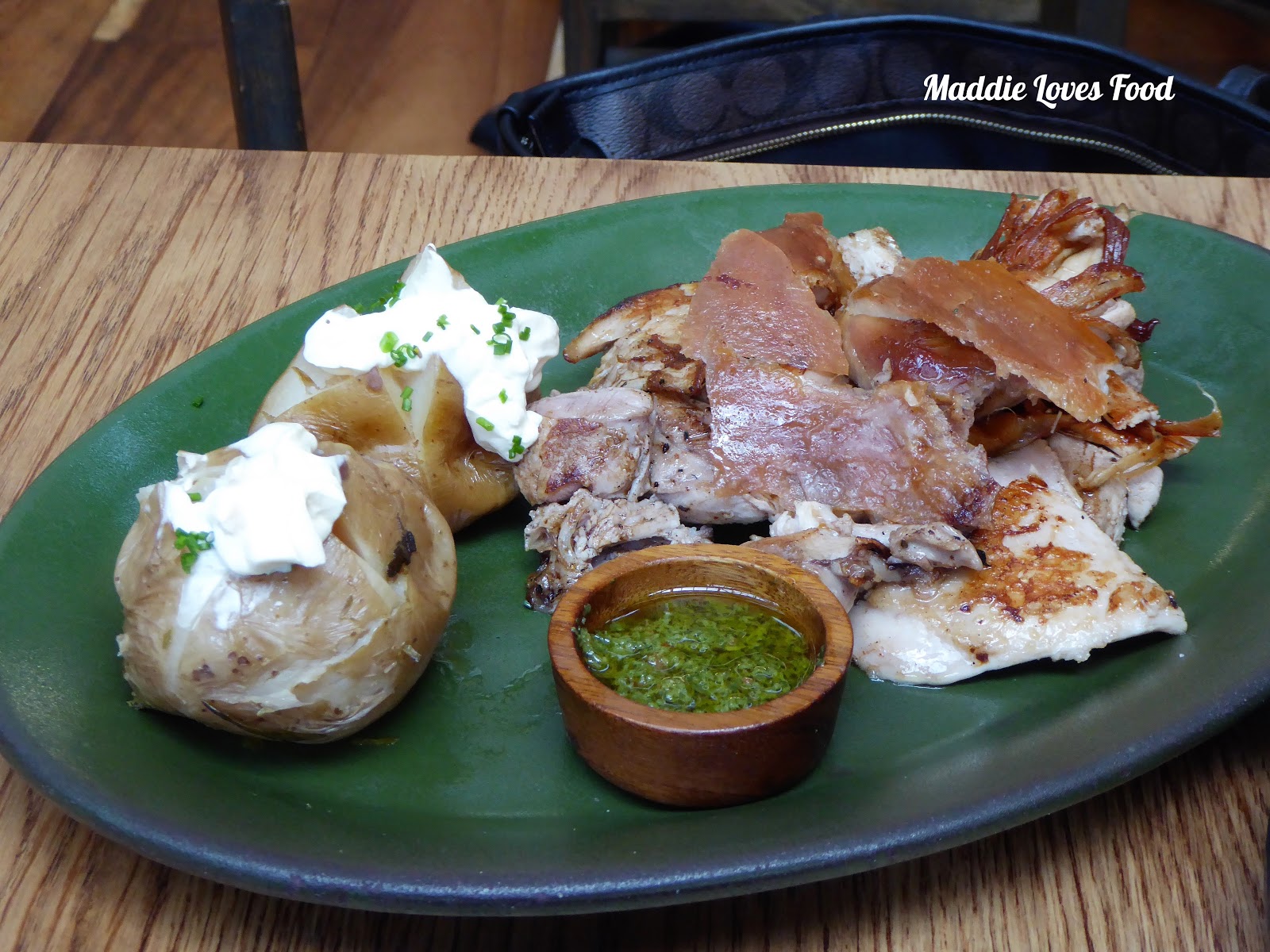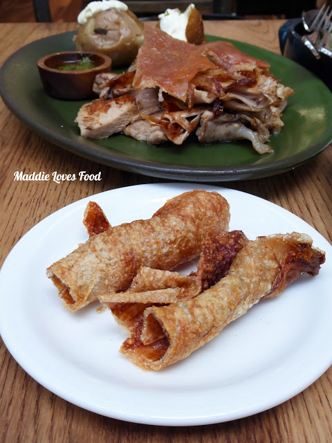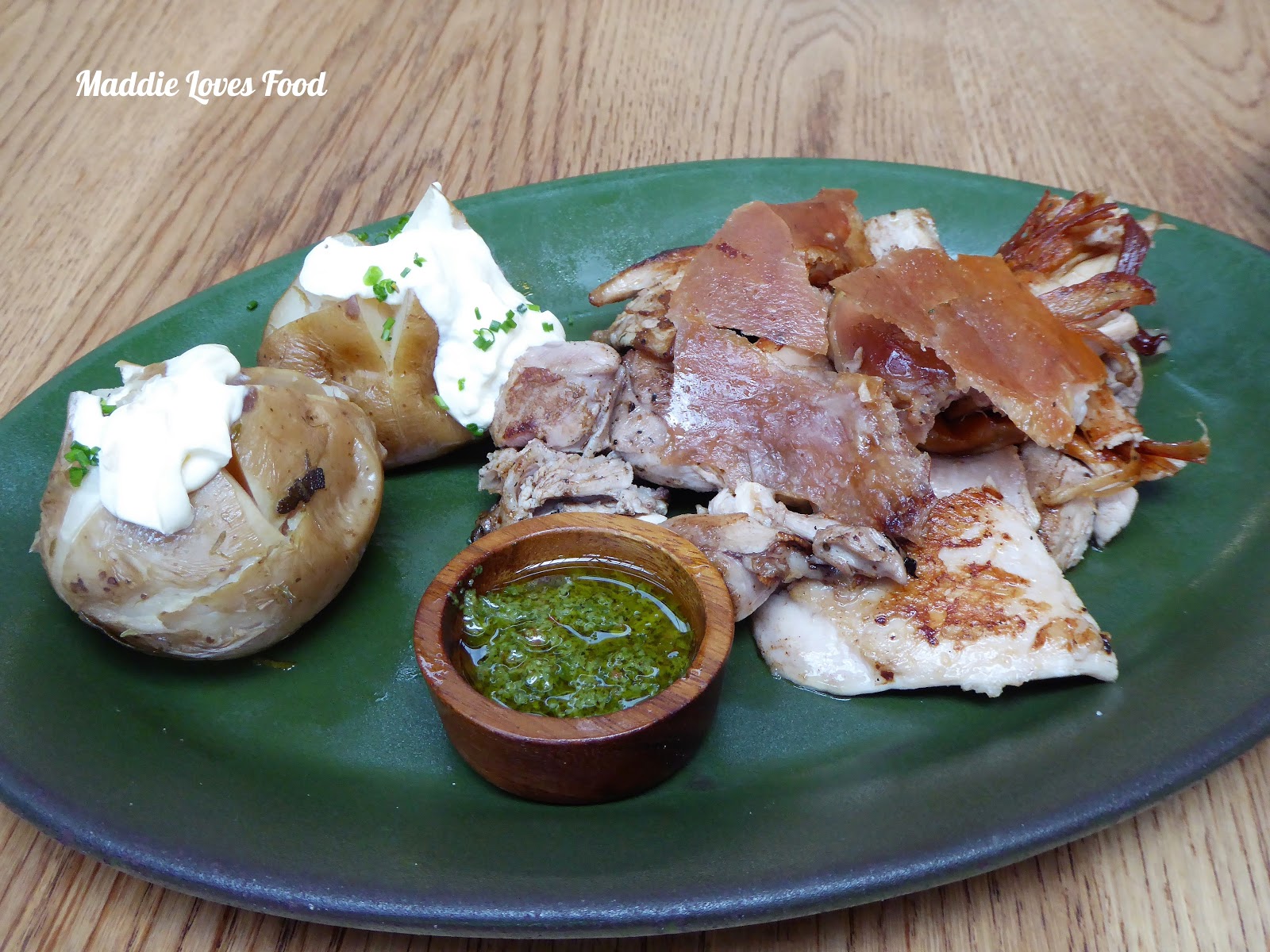 We’re lucky enough to be served a plate of traditional crackling on the side. It’s crunchy and addictive, almost like a pork skin chip. Baked potatoes are the perfect spit roast accompaniment; they’re comforting little gems which are soft and tender. The whole spit roast could easily be shared between two.